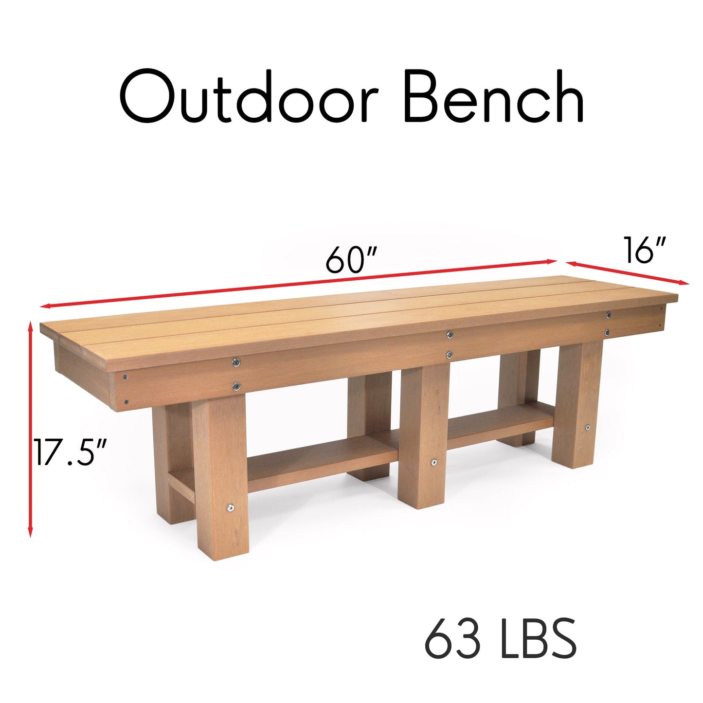 - PREMIUM MATERIAL - PolyTeak Benches are made of a Unique, Modern Heavy Duty blend of HIPS Plastic Chair and is a twist on the classic, making it a timeless addition to your patio, deck, porch, or backyard