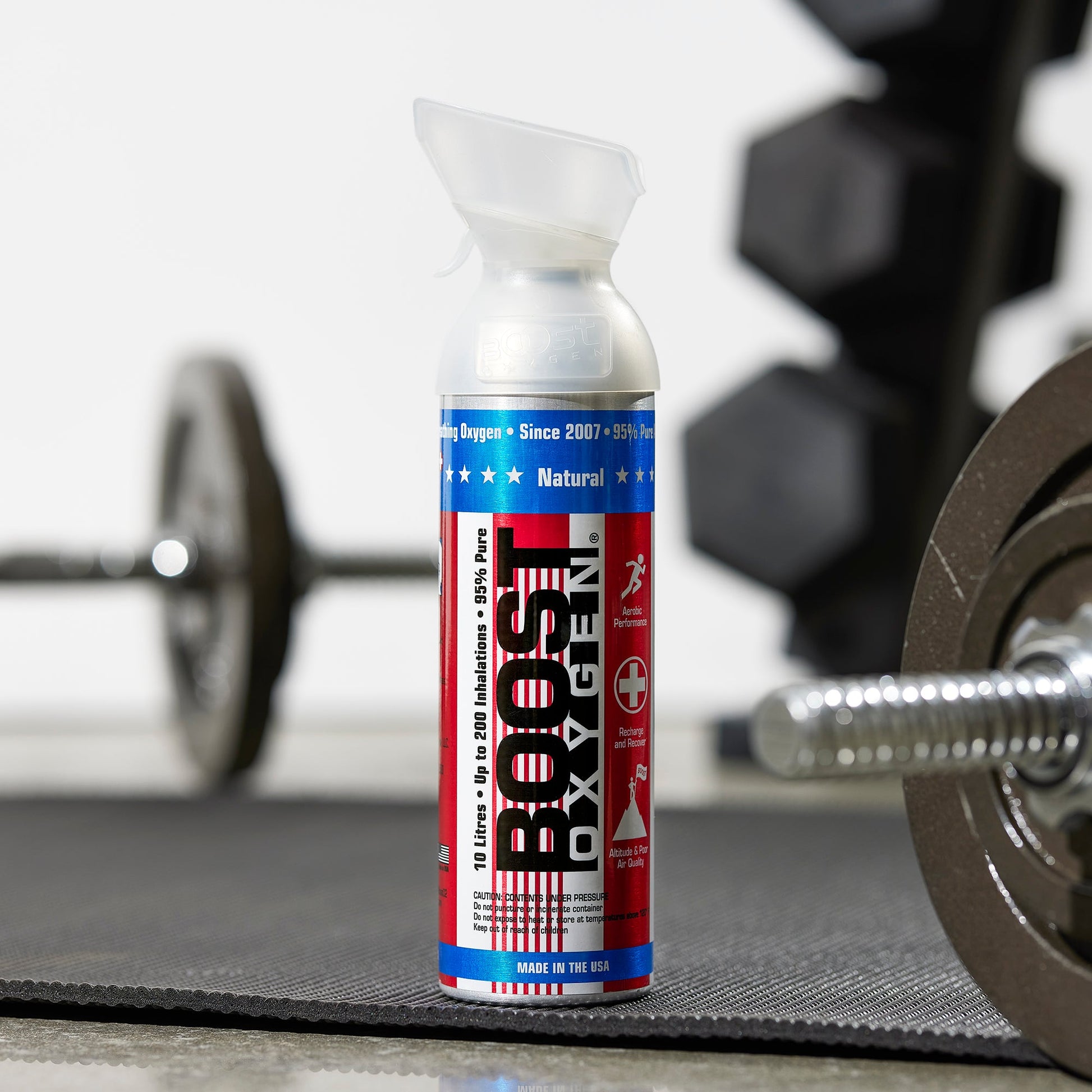 Introduce more oxygen to your life and lungs with the Boost Oxygen 10-Liter Special Edition Stars and Stripes Canned Oxygen Canister.