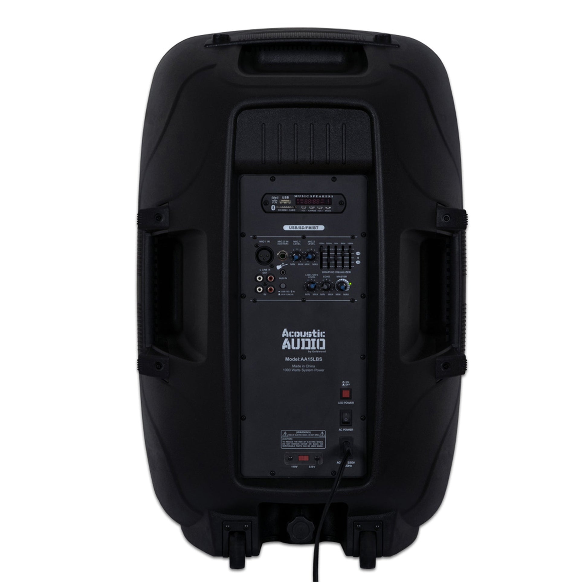 Packed with features, each entertainment system has a multi-colored LED woofer, an integrated power amplifier on a 1000-watt system, 4 input options, a built-in FM tuner, and a graphic equalizer, along with options to play music from a USB drive or SD card. 4 inputs mean lots of options for karaoke or jamming with friends, whether using the 0.25-inch mic, 0.25-inch instrument, 3.5-millimeter AUX, or the RCA to hook up to another speaker. Included with each Bluetooth speaker are a mic with cable, speaker stand, and remote control, which comes in handy to manage volume from across the room.