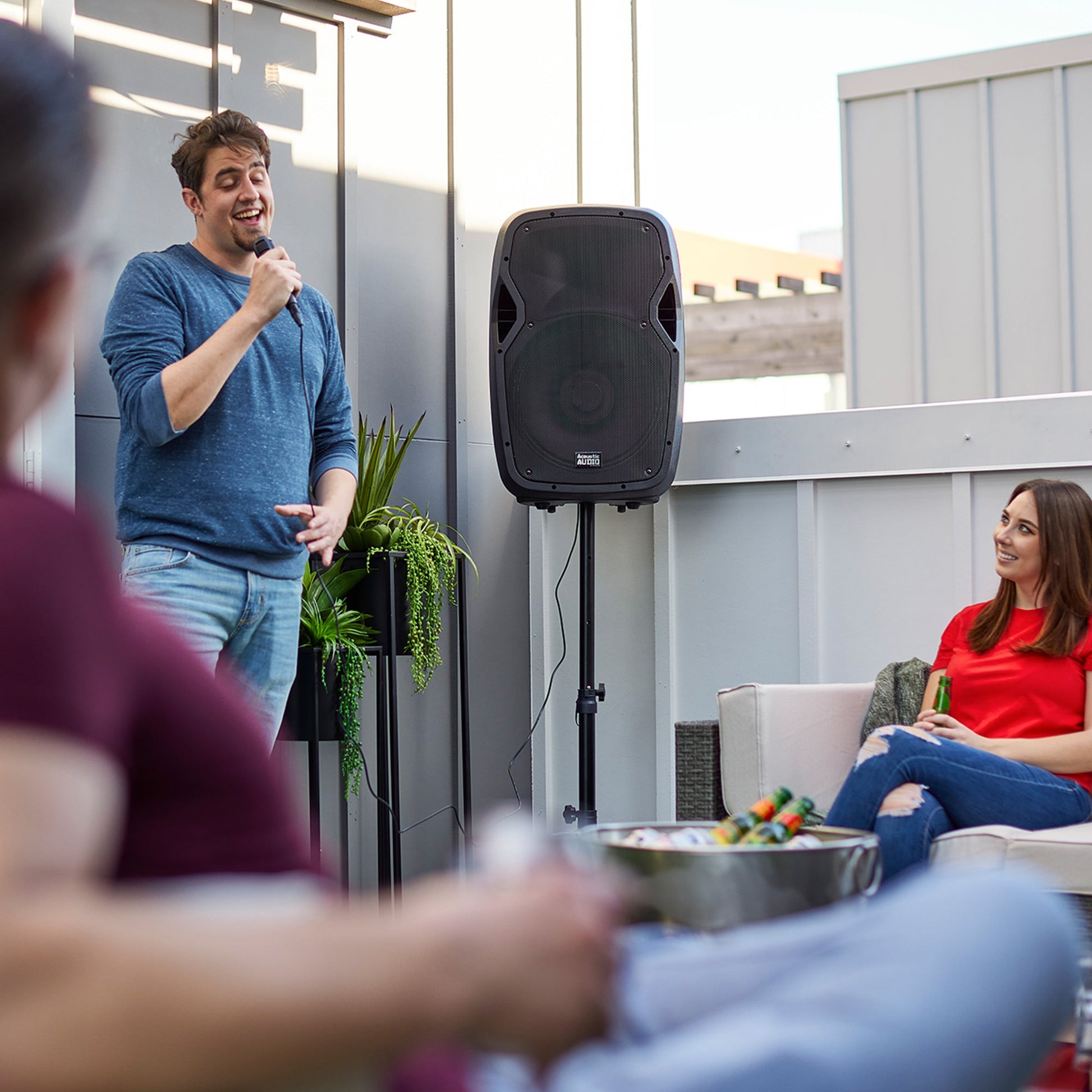 - 2-way design and functionality with deluxe 15" woofer and 2" tweeter for great sound at your party