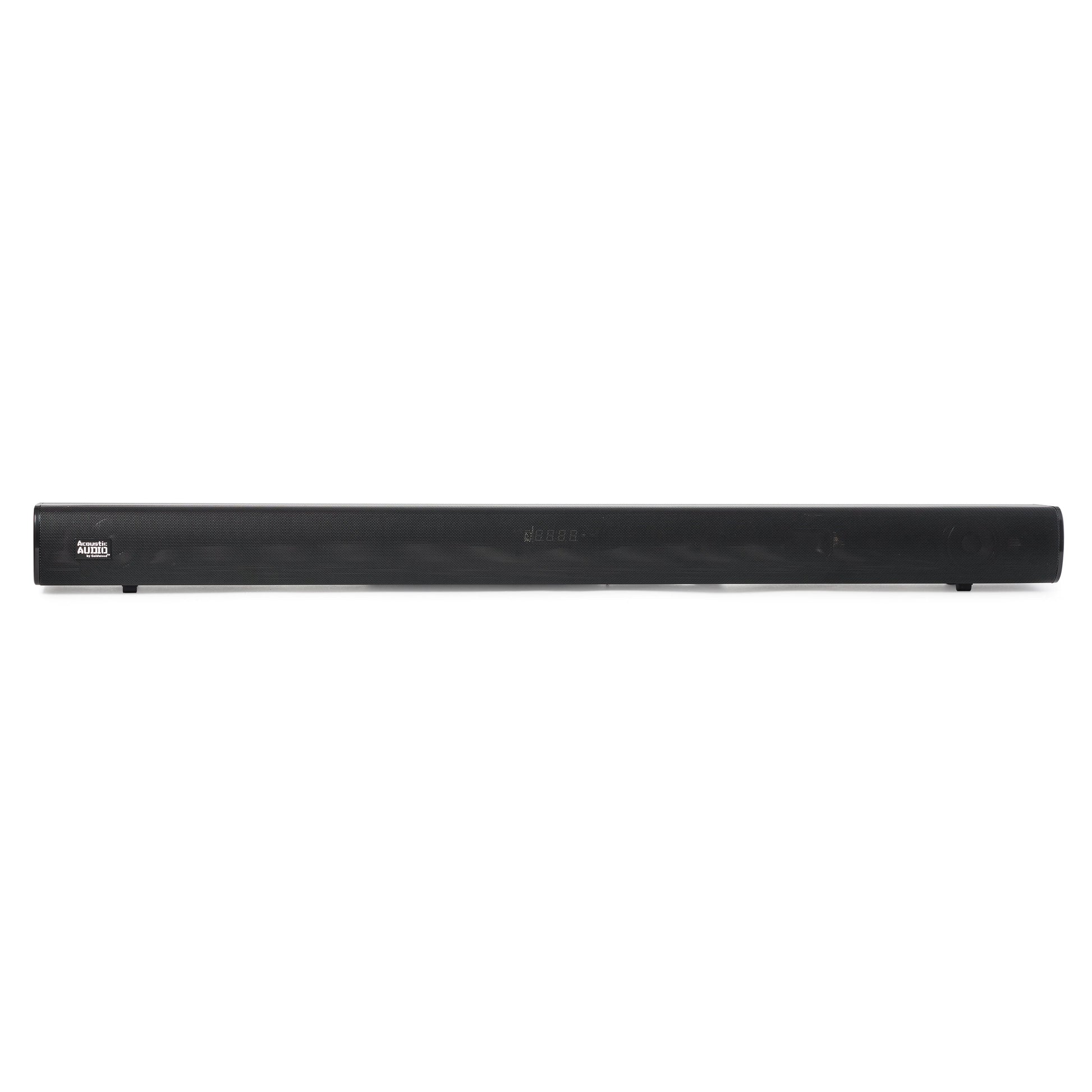 Amplify your home theater sound system and add super strong bass tones with the Acoustic Audio by Goldwood 2.1 Channel Sound Bar for TV with wired Subwoofer.