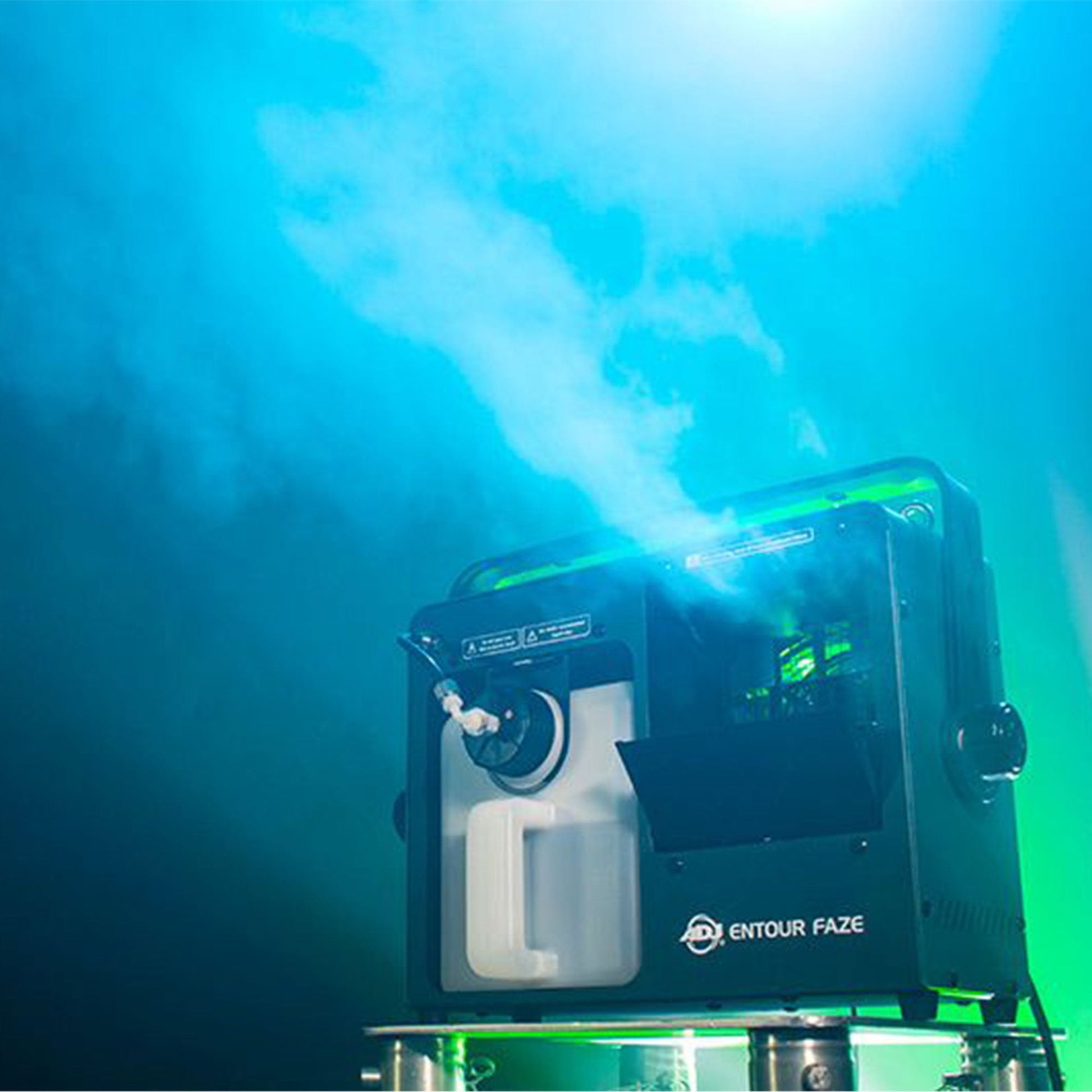 - The Entour Faze creates a thin foggy haze to allow your lighting elements to truly shine