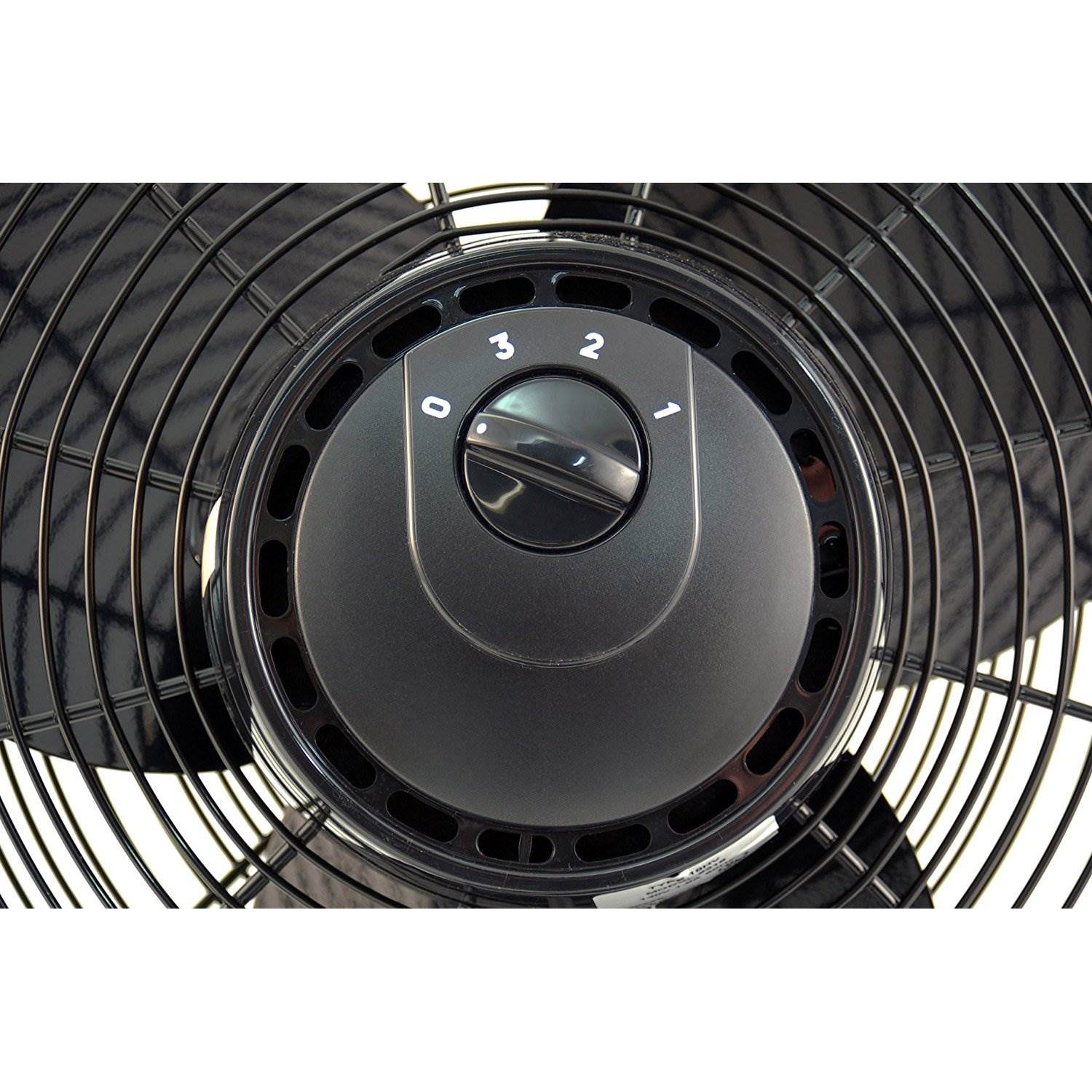 - Rear-mounted rotary switch for turning fan on and off