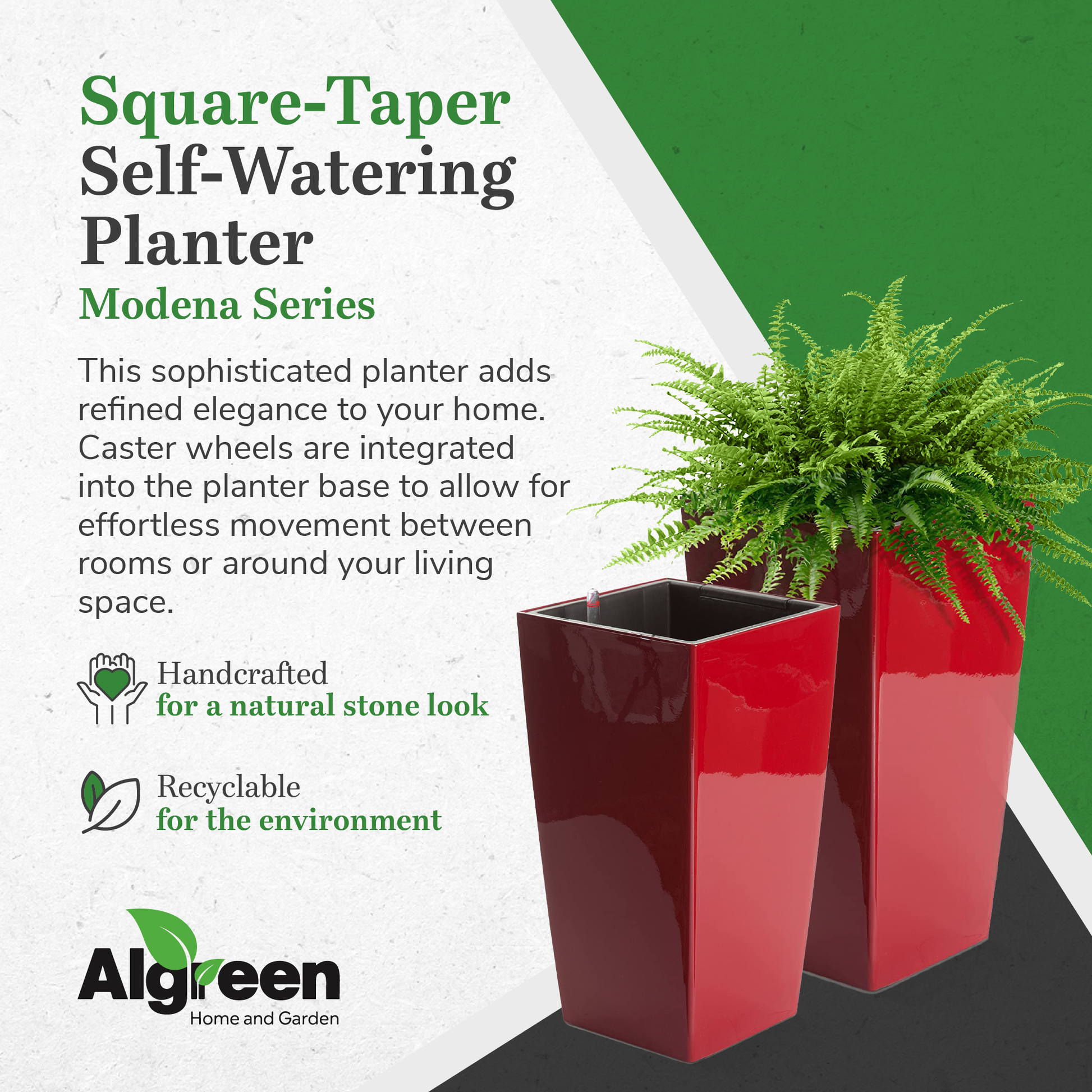Algreen Modena 22" Inside/Outside Self-Watering Square Planter Pot w/Wheels, Red