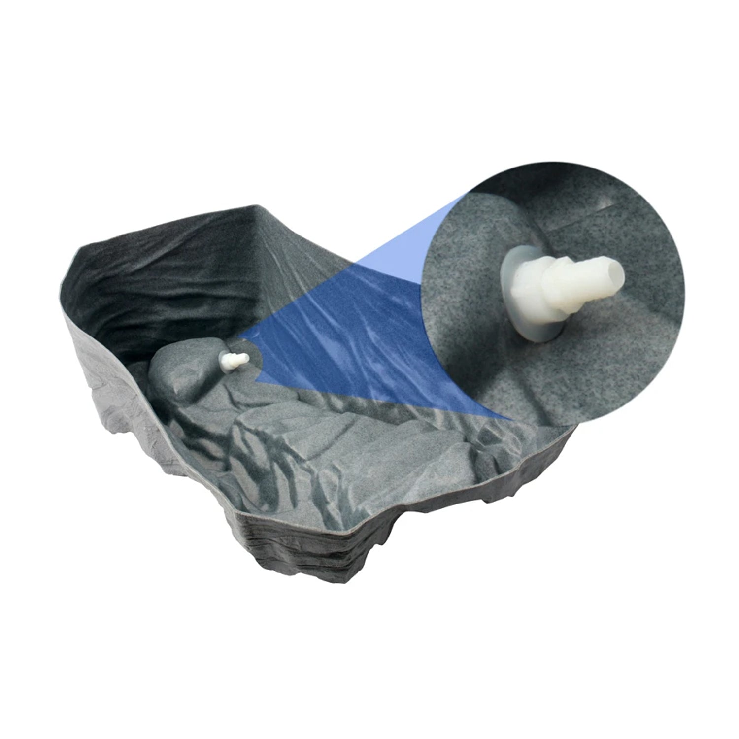 You can move and install this lightweight waterfall easier than real rocks without losing out on beautiful charcoal stone looks. It also features a 0.75-inch fitting, so you can connect your pump and tubing.