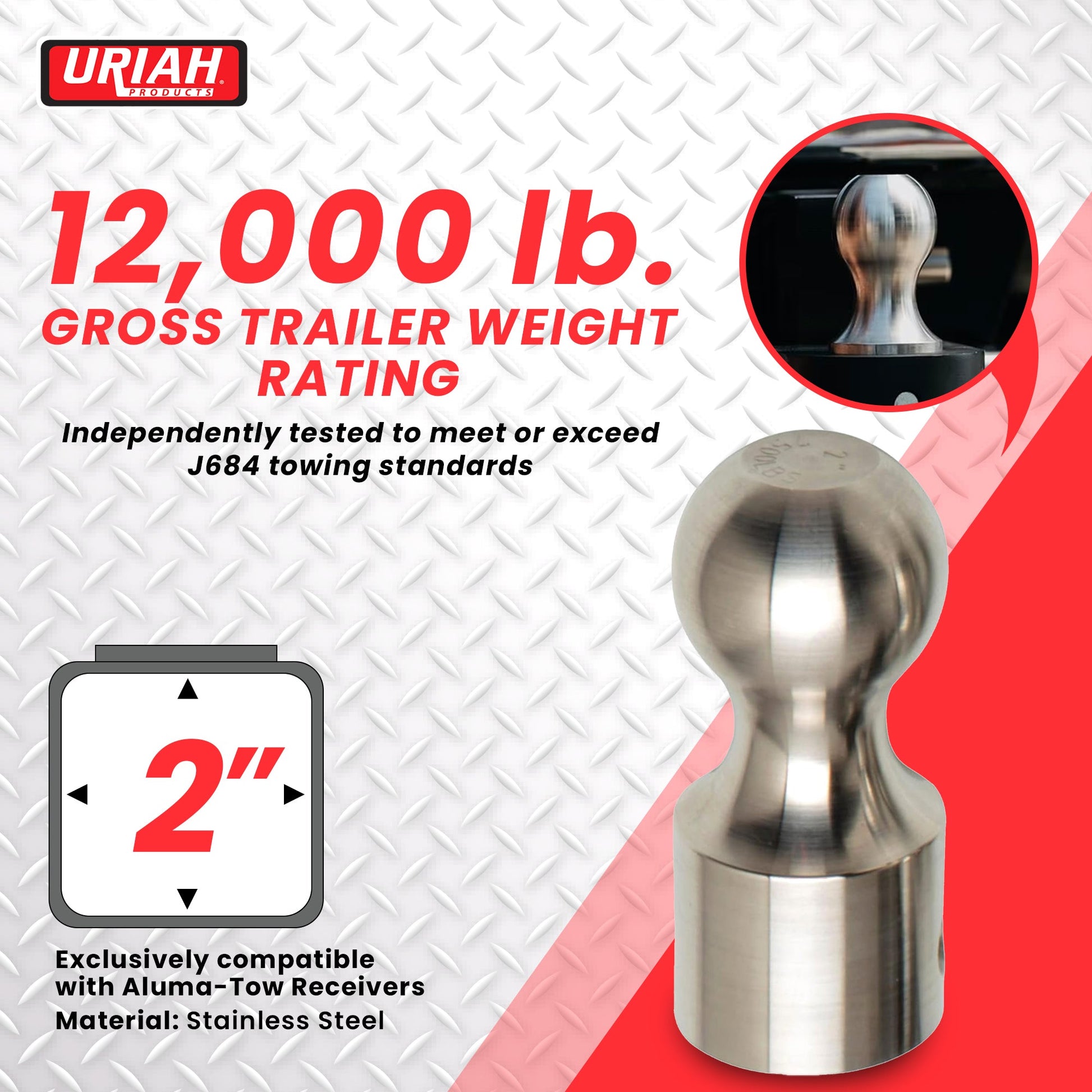 Exclusive to Aluma-Tow receivers, this replacement hitch ball seamlessly integrates with patented hitches, guaranteeing compatibility and optimal performance. Rest assured, the stainless steel construction remains impervious to corrosion, maintaining integrity and functionality through countless miles on the road. Boasting a gross trailer weight rating of 12,000 pounds for the 2-inch ball, this towing essential is ready to tackle even the most demanding towing tasks with ease. Each Aluma-Tow product undergoes rigorous independent testing to ensure compliance with or surpassing J684 towing standards, providing you with the utmost confidence in safety and reliability.