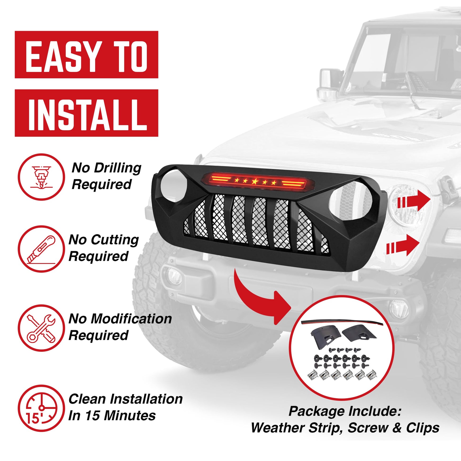 AMERICAN MODIFIED Demon Grille with Red Lights for 18-21 Jeep Wrangler/Gladiator