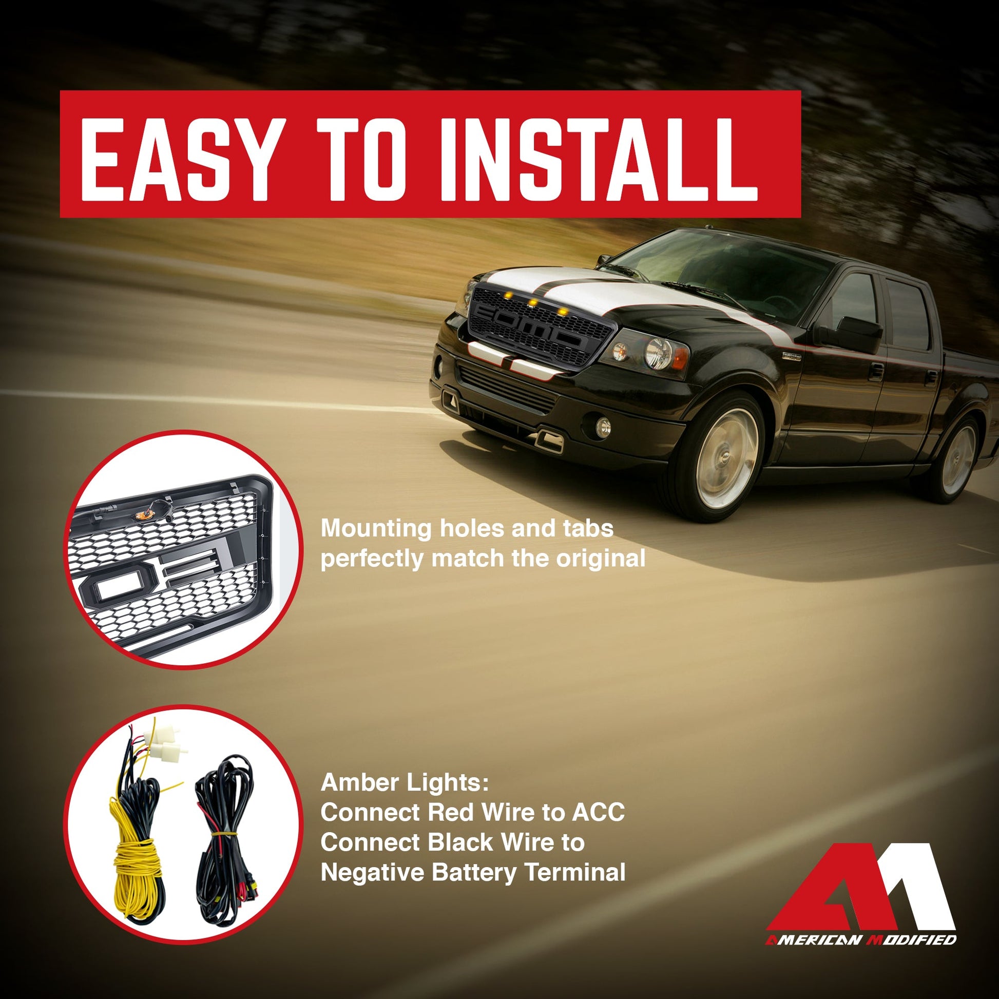 The AMERICAN MODIFIED Grille makes your vehicle stand out on the road. The sleek design and durable materials add a clean look that can withstand all the hazards of harsh off-road travel.