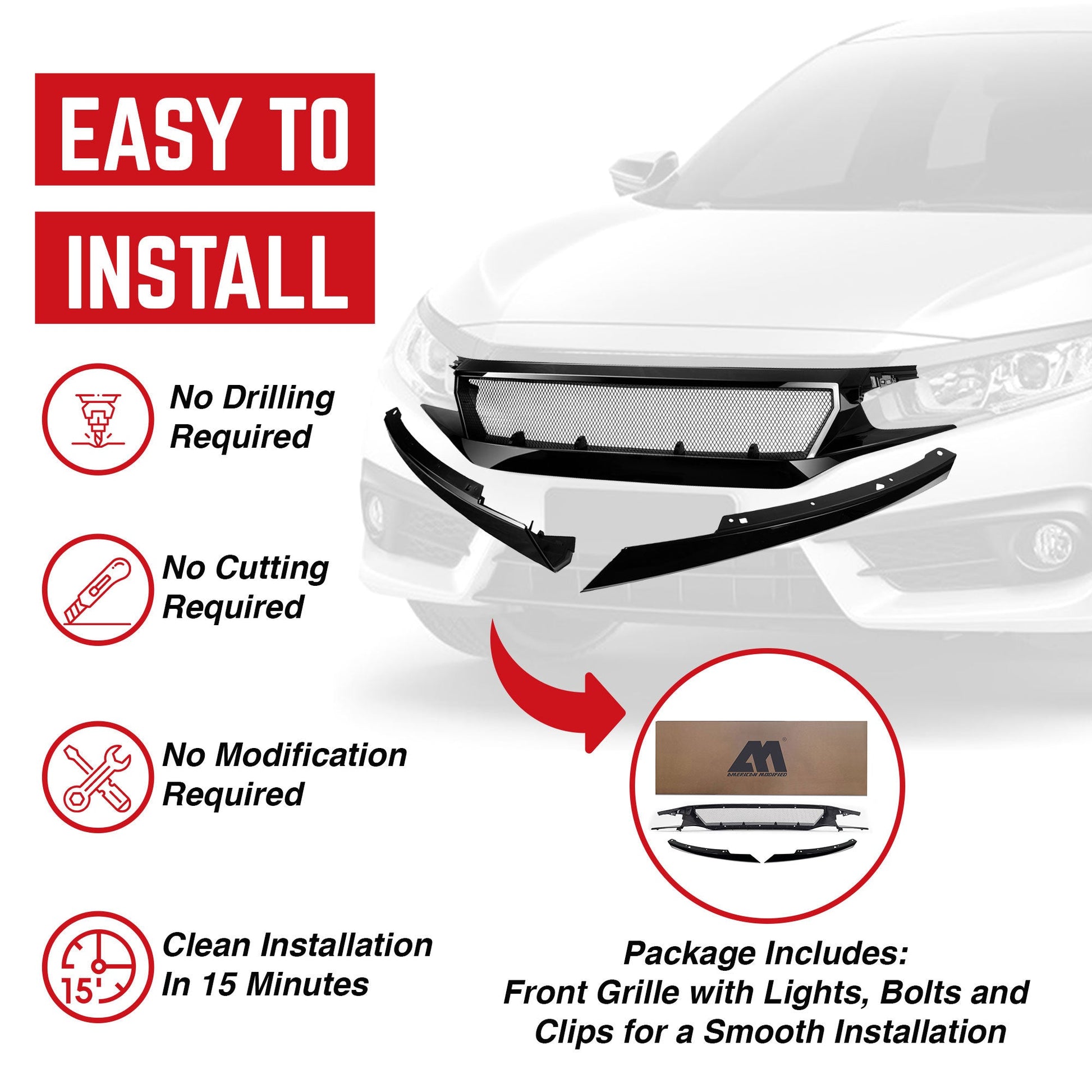 The AMERICAN MODIFIED Sports Grille compatible with 2016, 2017, 2018, 2019, 2020, and 2021 with Steel Mesh makes your vehicle stand out. Crafted with an eye-catching design and a pristine, clean look, this grille is engineered to redefine your vehicle's aesthetic appeal. Its sleek mesh structure not only enhances the visual allure but also optimizes air intake, boosting your car's performance to new heights.