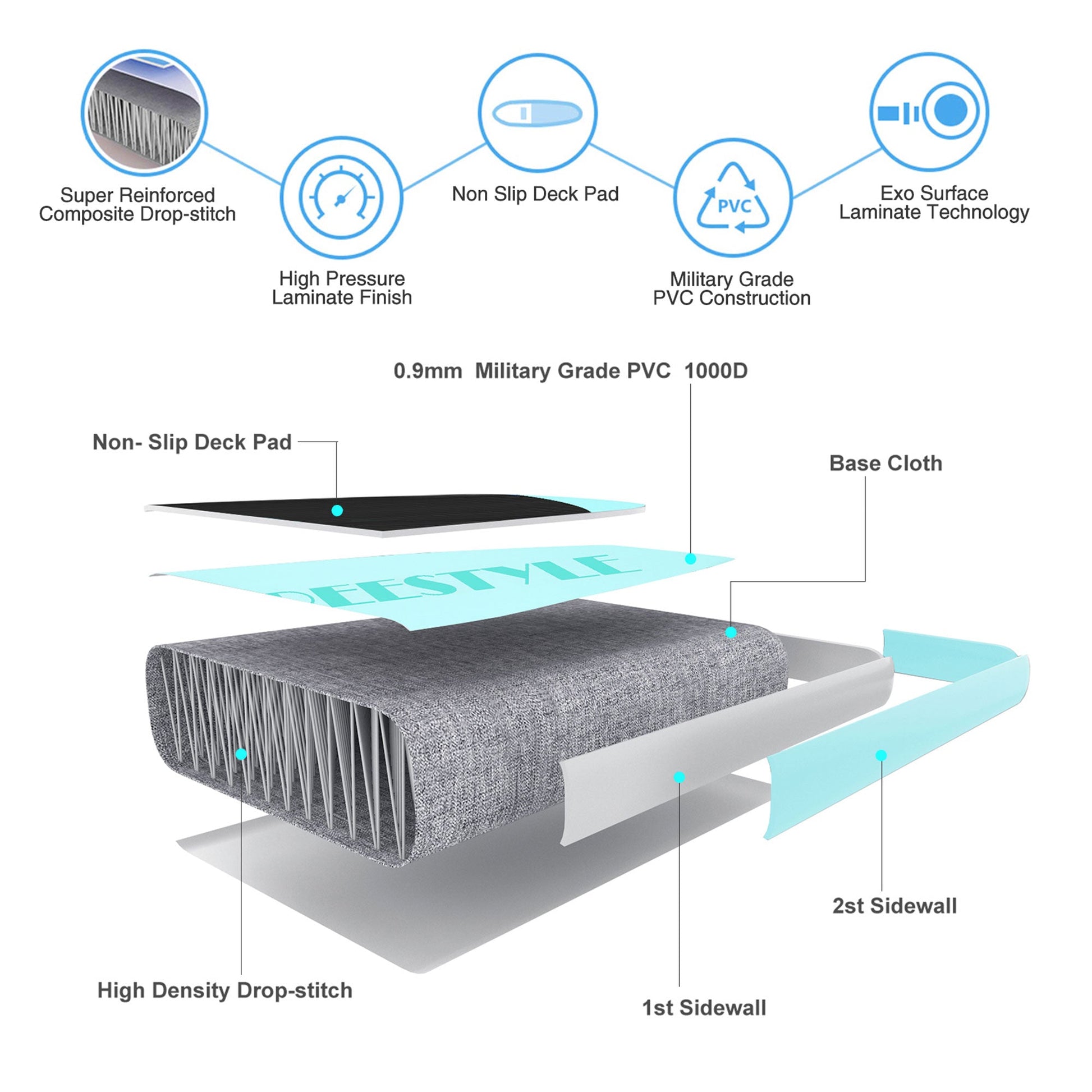 - Durable PVC construction maintains its shape and has a non-slip deck for added safety