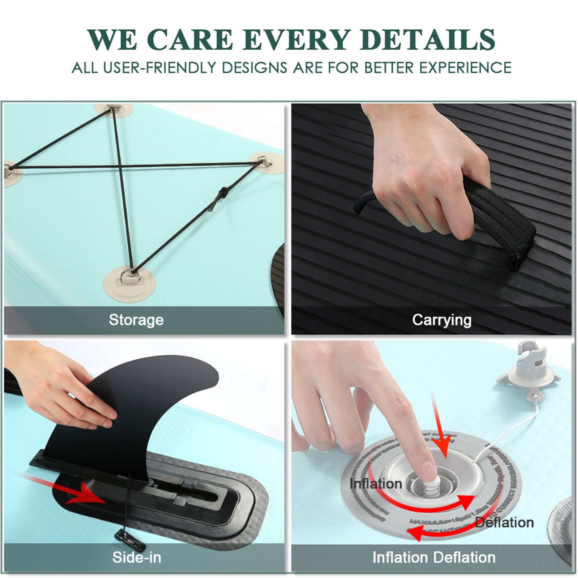 - Board can be deflated and folded for easy storage or placed in the included carry bag to take with you to and from the water