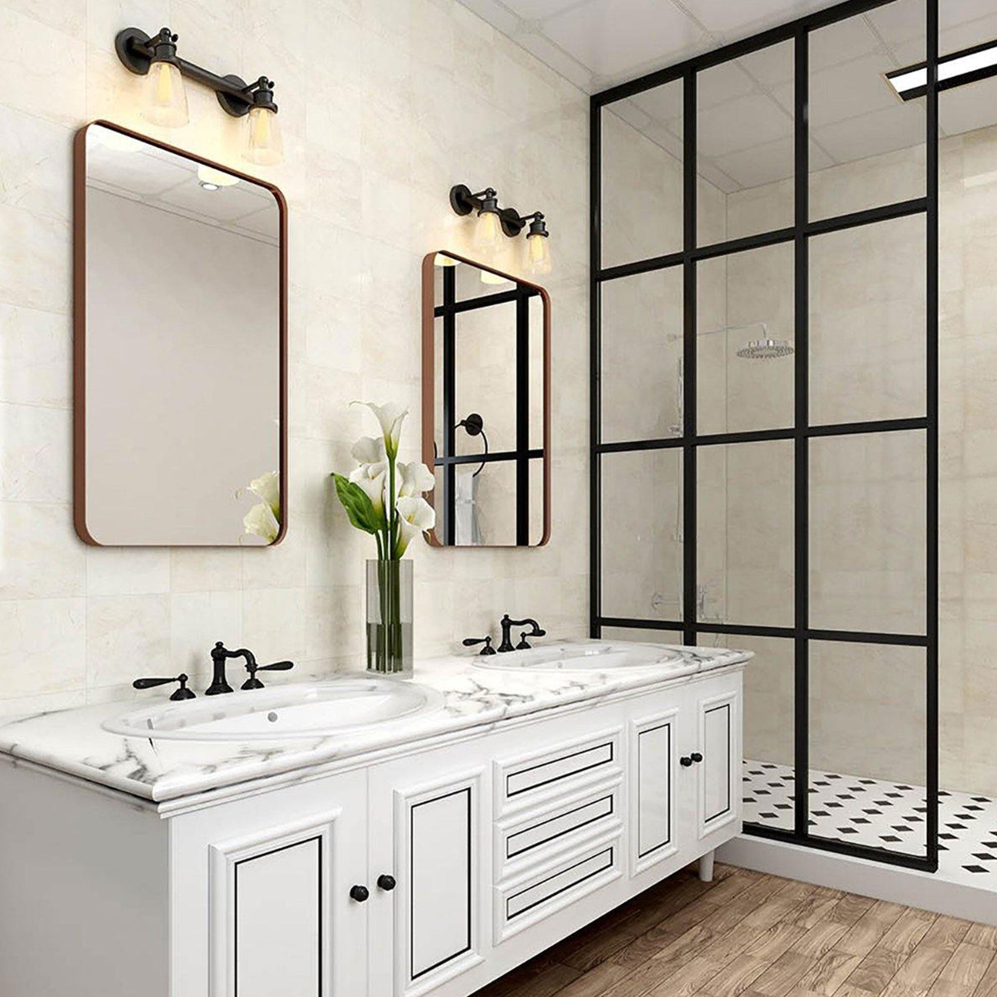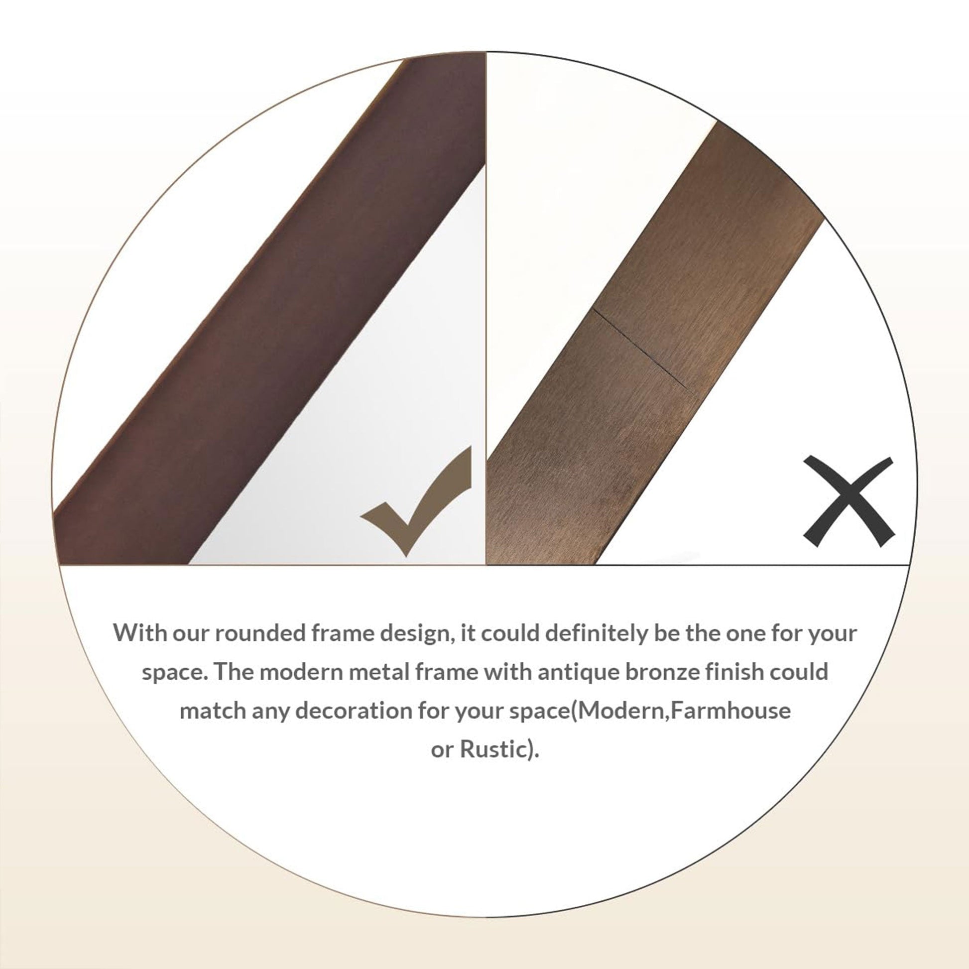 - Modern hanging mirror rated for use in bathroom, fireplace, entryway, living room, and other high-moisture areas