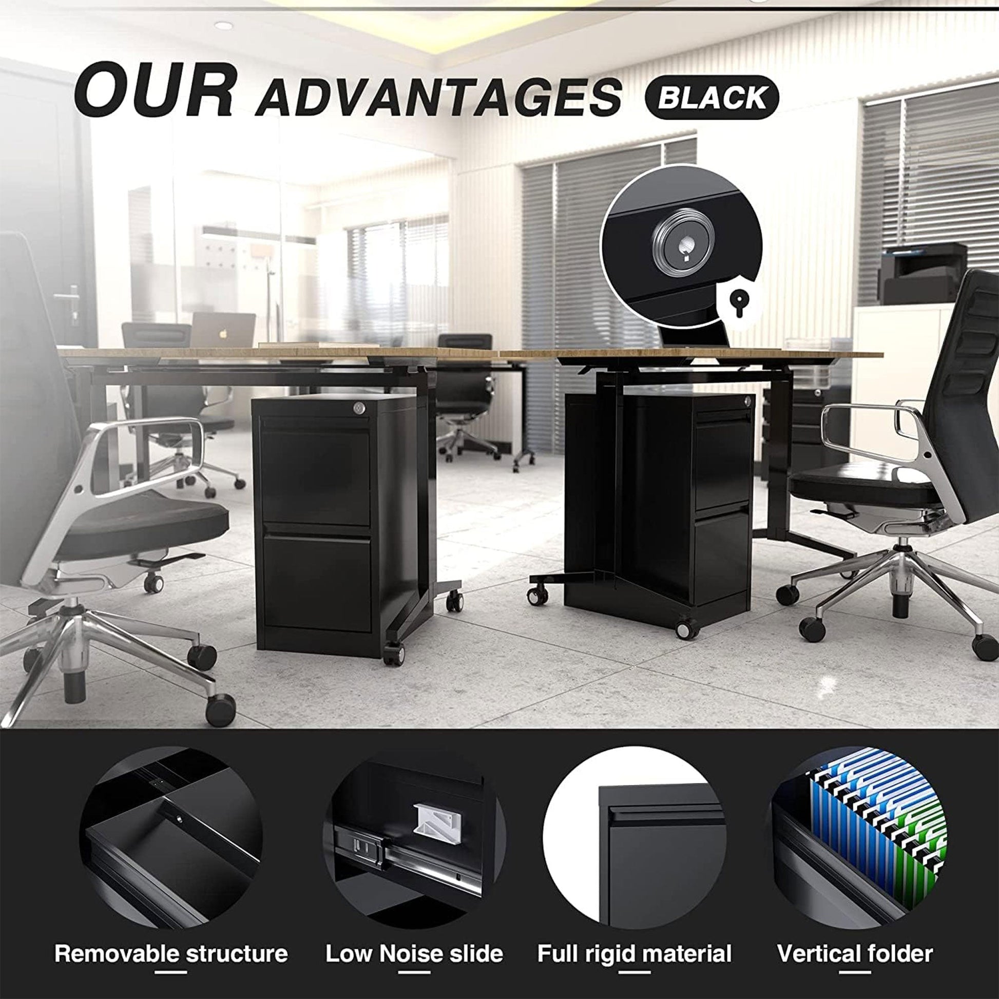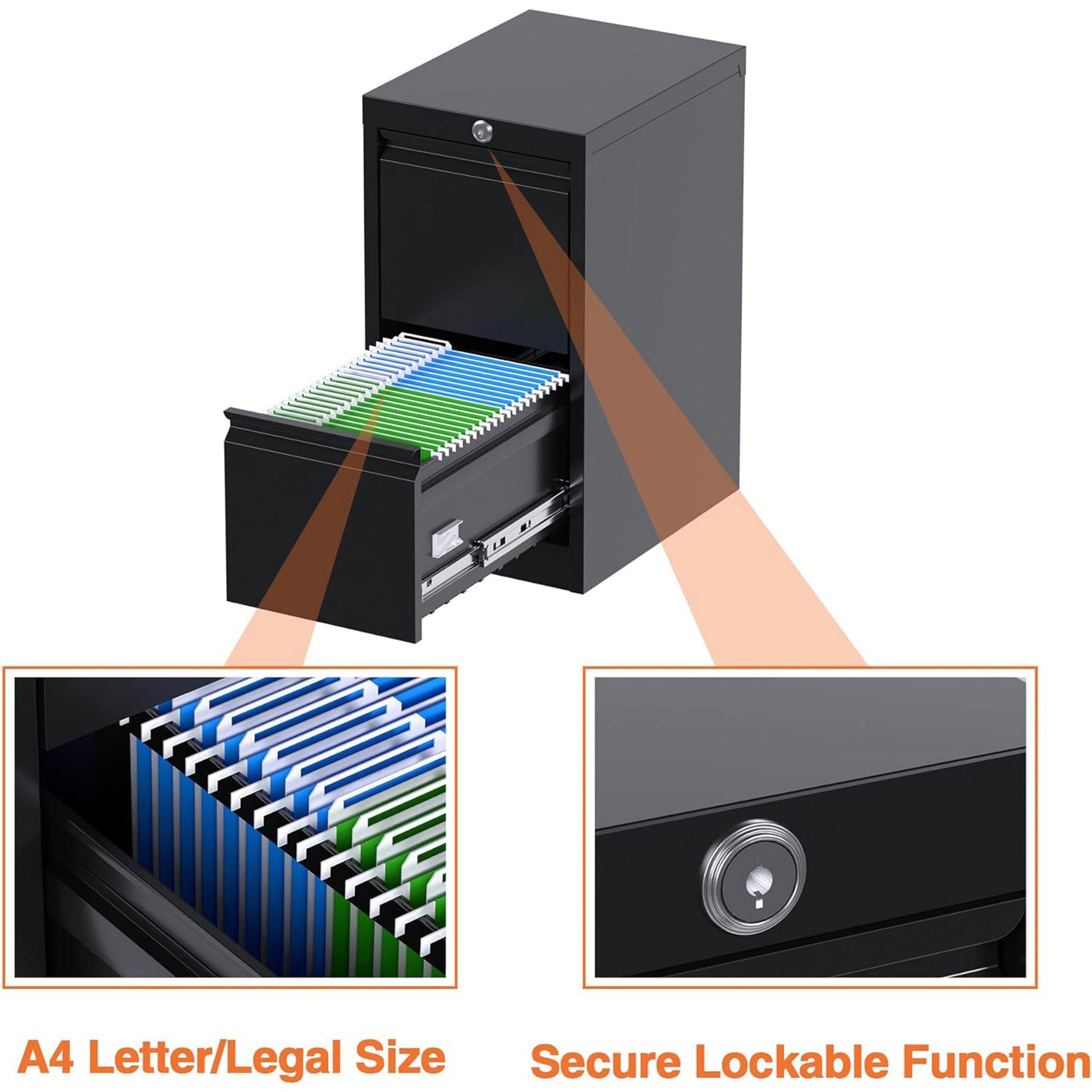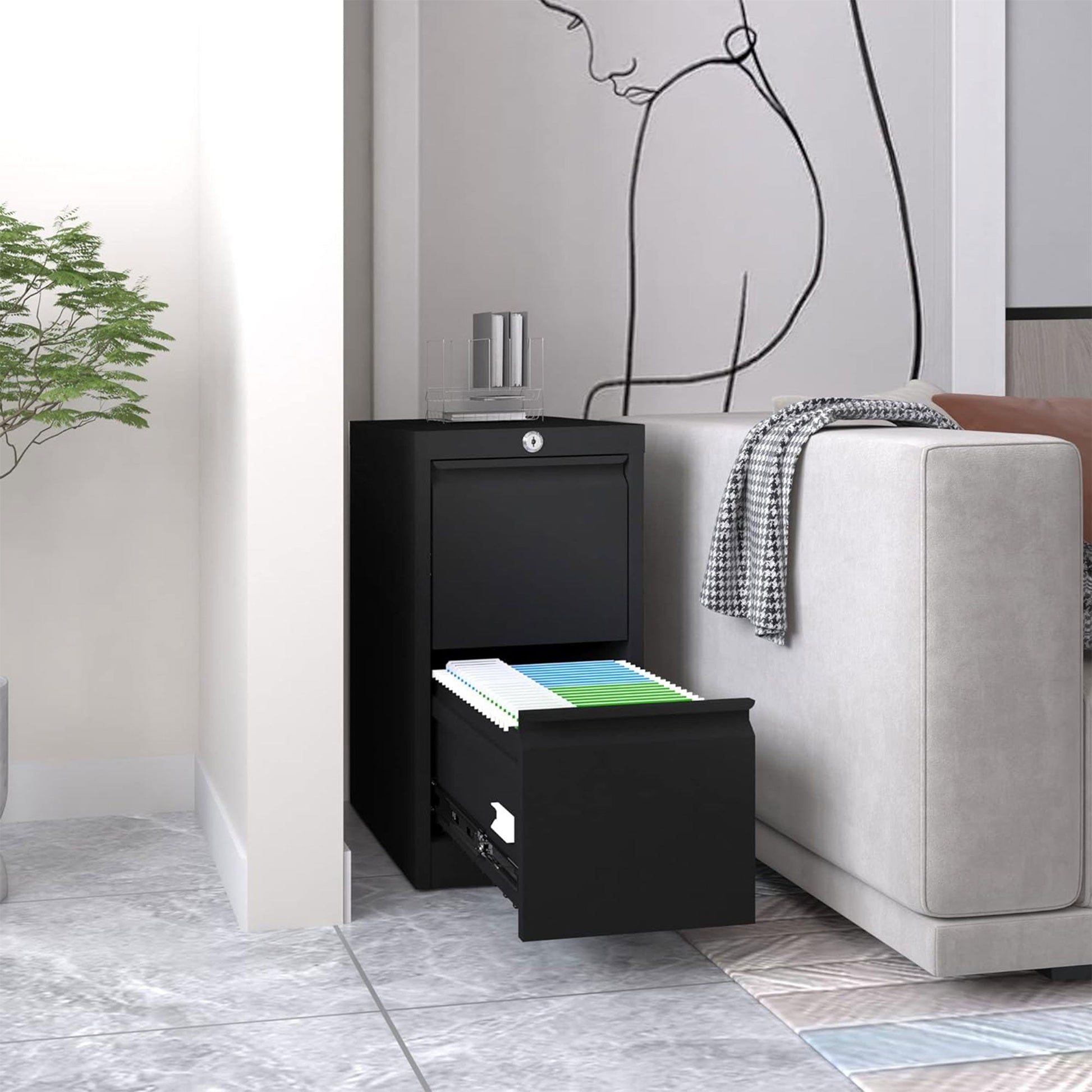AOBABO 2 Drawer Vertical Metal File Cabinet with Lock for Home and Office, Black