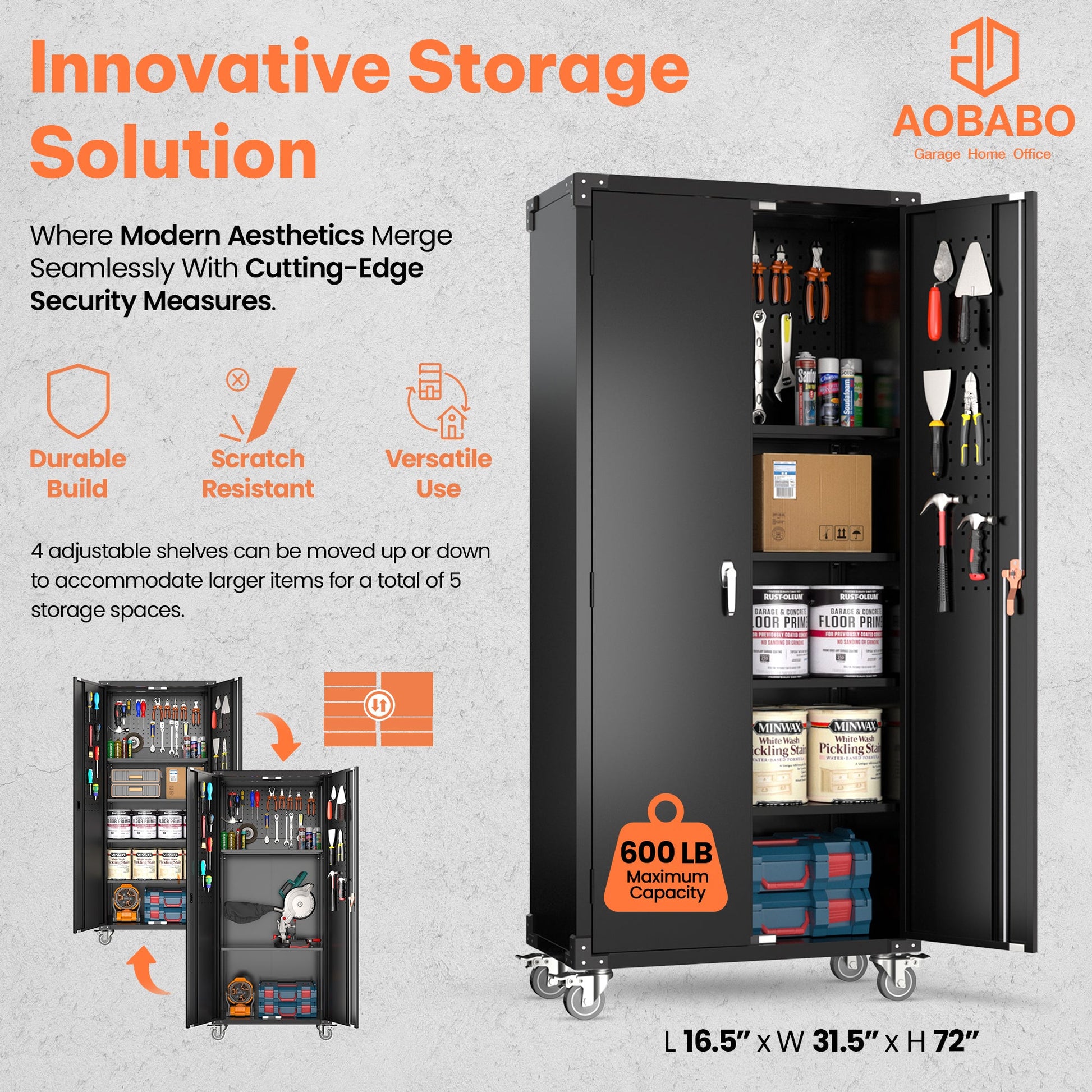 Transform your garage organization with the AOBABO 72-Inch Metal Garage Storage Cabinet with Wheels.