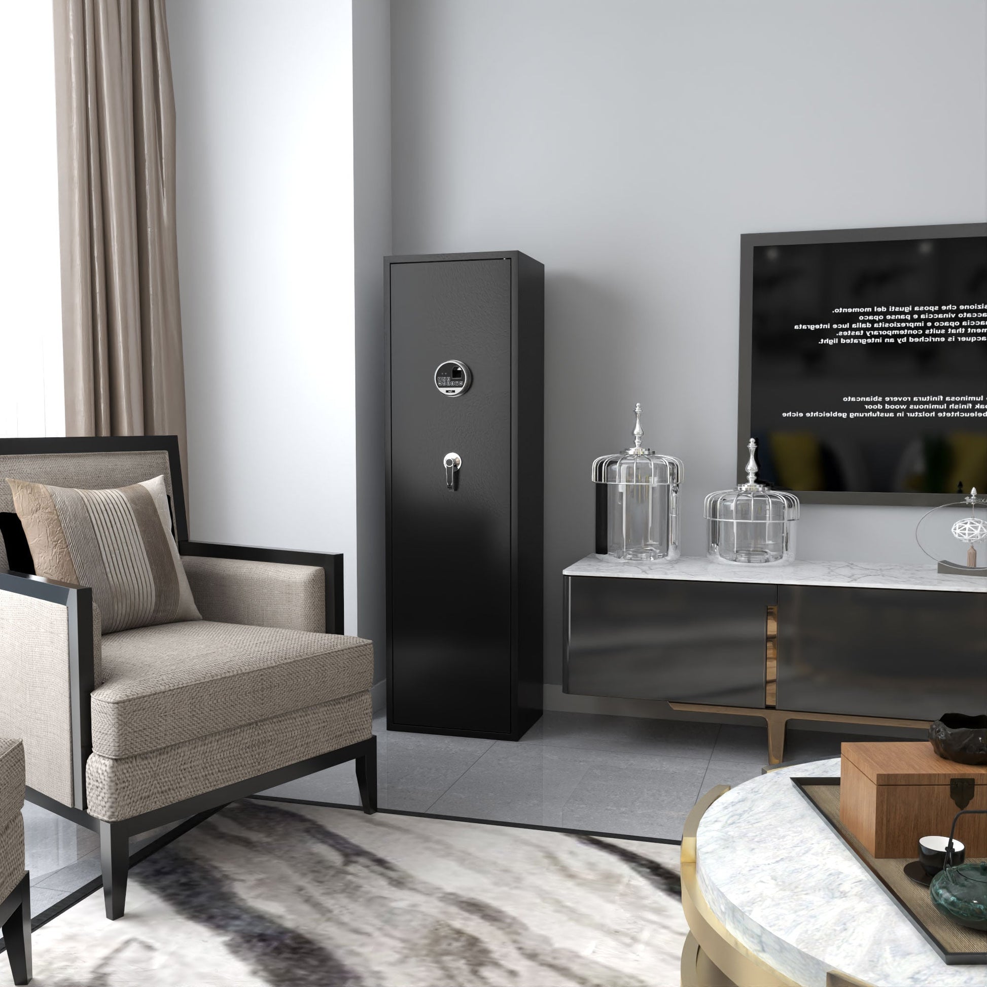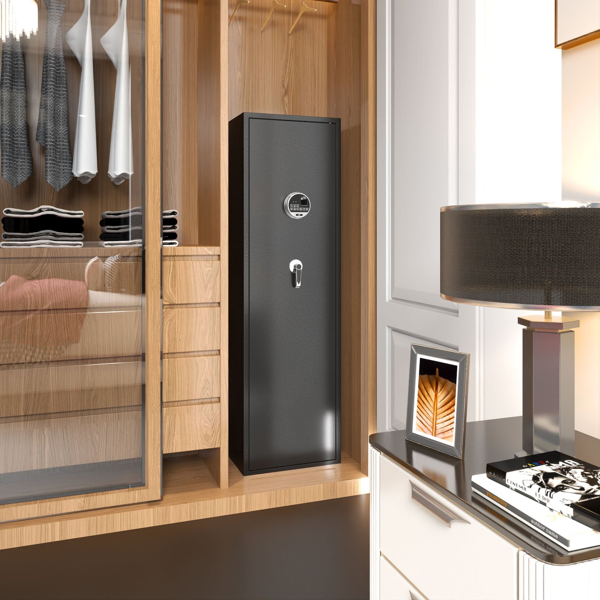 - Large and deep gun cabinet can store up to 8 rifles and 2 pistols; It will fit your firearms if you have optics/scopes attached or a rail mount on top
