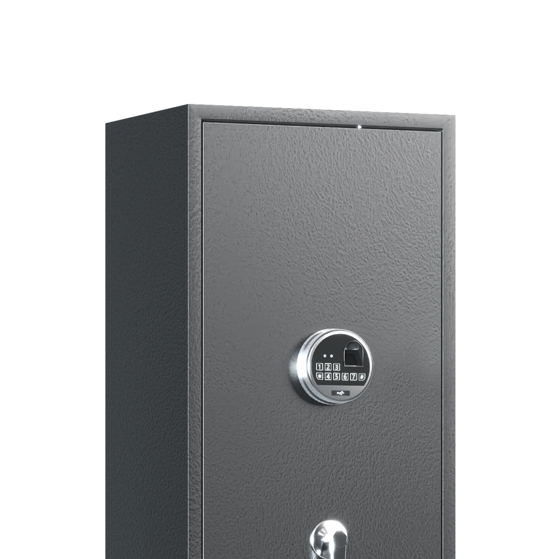 - Offers 3 access options: fingerprint recognition, a 10-digit keypad, and two emergency keys for quick opening