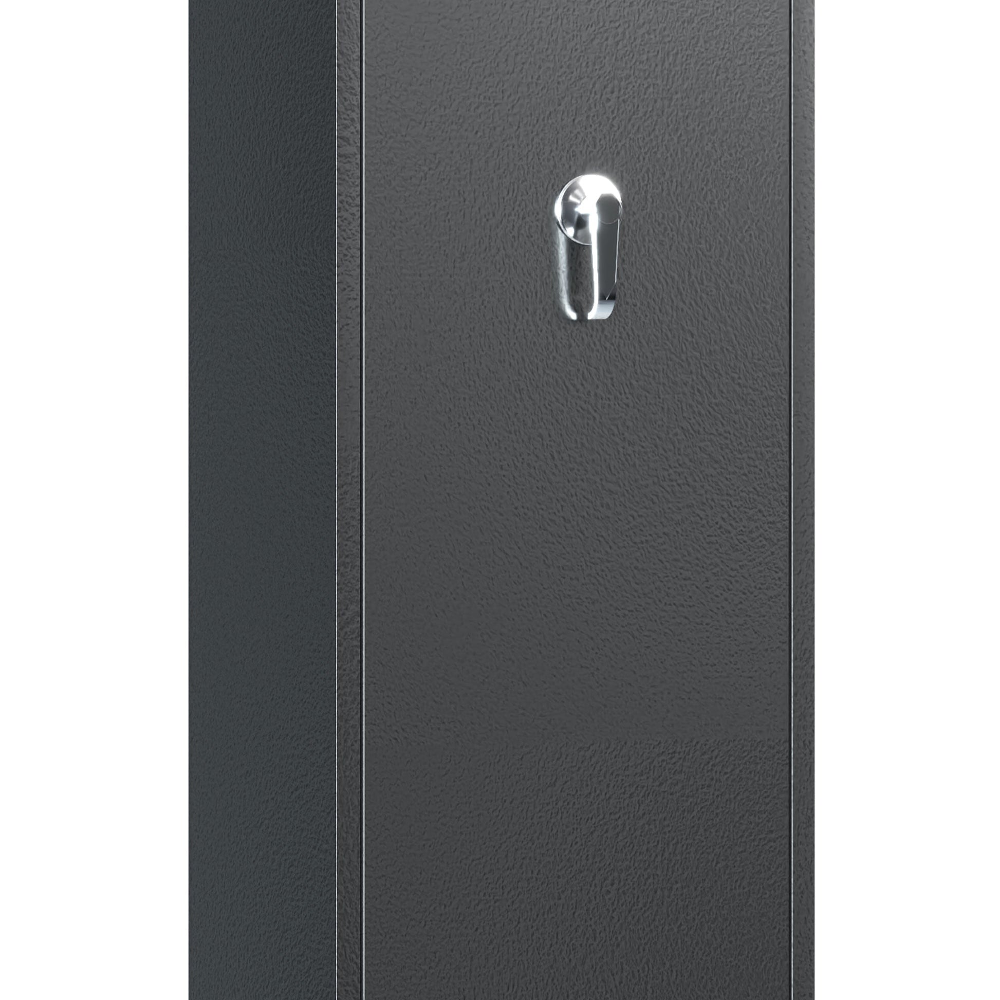 This gun safe for rifles and pistols makes sure your guns are kept behind locked doors, giving you peace of mind whether at home or away on a trip. With quick access using the programmable 10-digit touchscreen keypad, you can set your password in 2 different ways. Either enter your password and rotate the handle, or you can use your key and rotate the handle to open. In case of emergency, the home safe includes 2 keys for added convenience. If the rifle safe beeps 3 times, the security system indicates that 2 passwords are not the same and the setting fails. When desired, you have the option to set the system to silent mode.