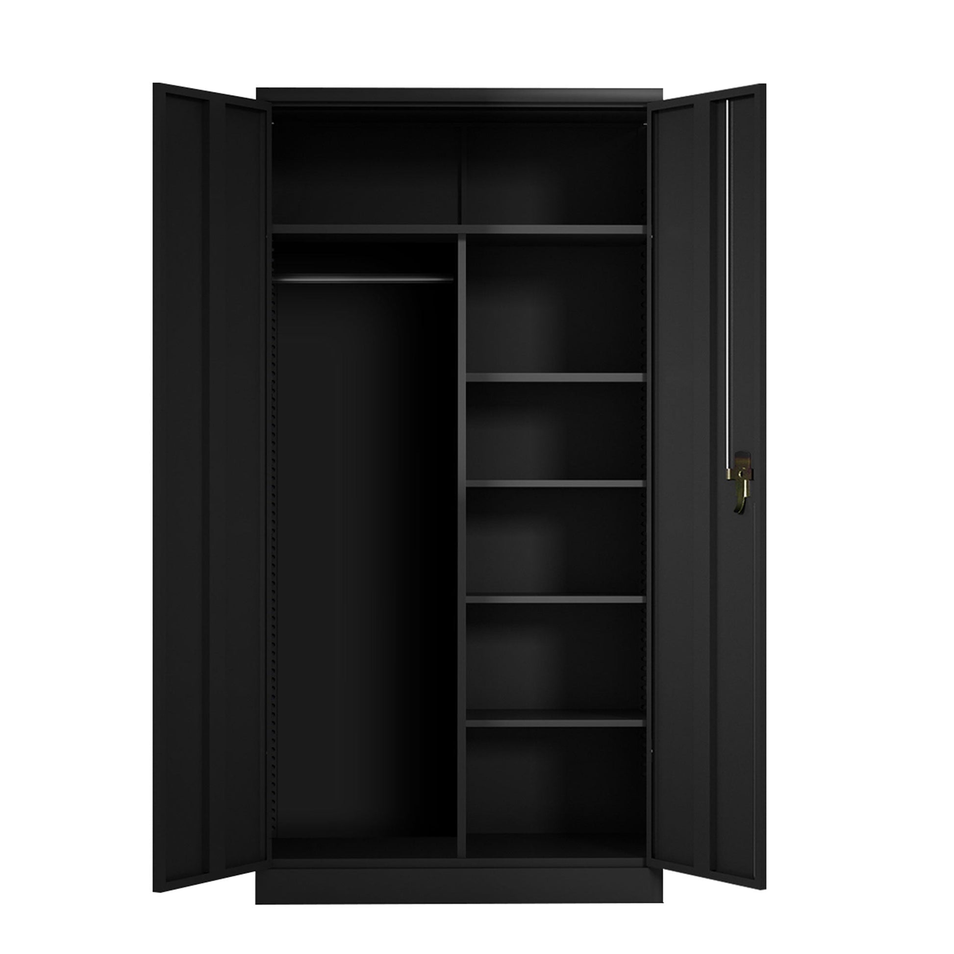 AOBABO Metal Storage Cabinet with 3 Adjustable Shelves and 1 Cloth Rail, Black