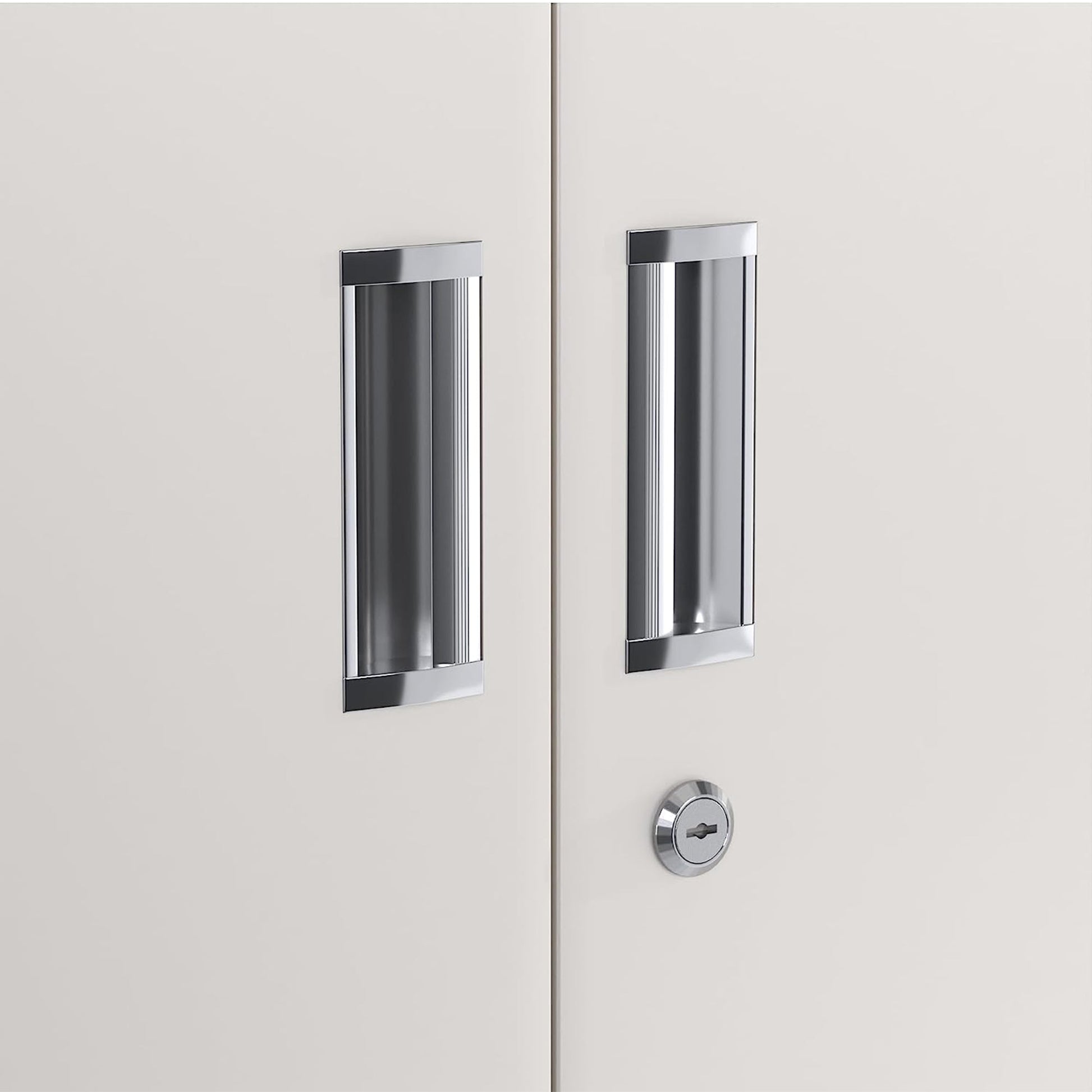 - Lockable storage cabinet secures your things and is ideal for any garage or workspace