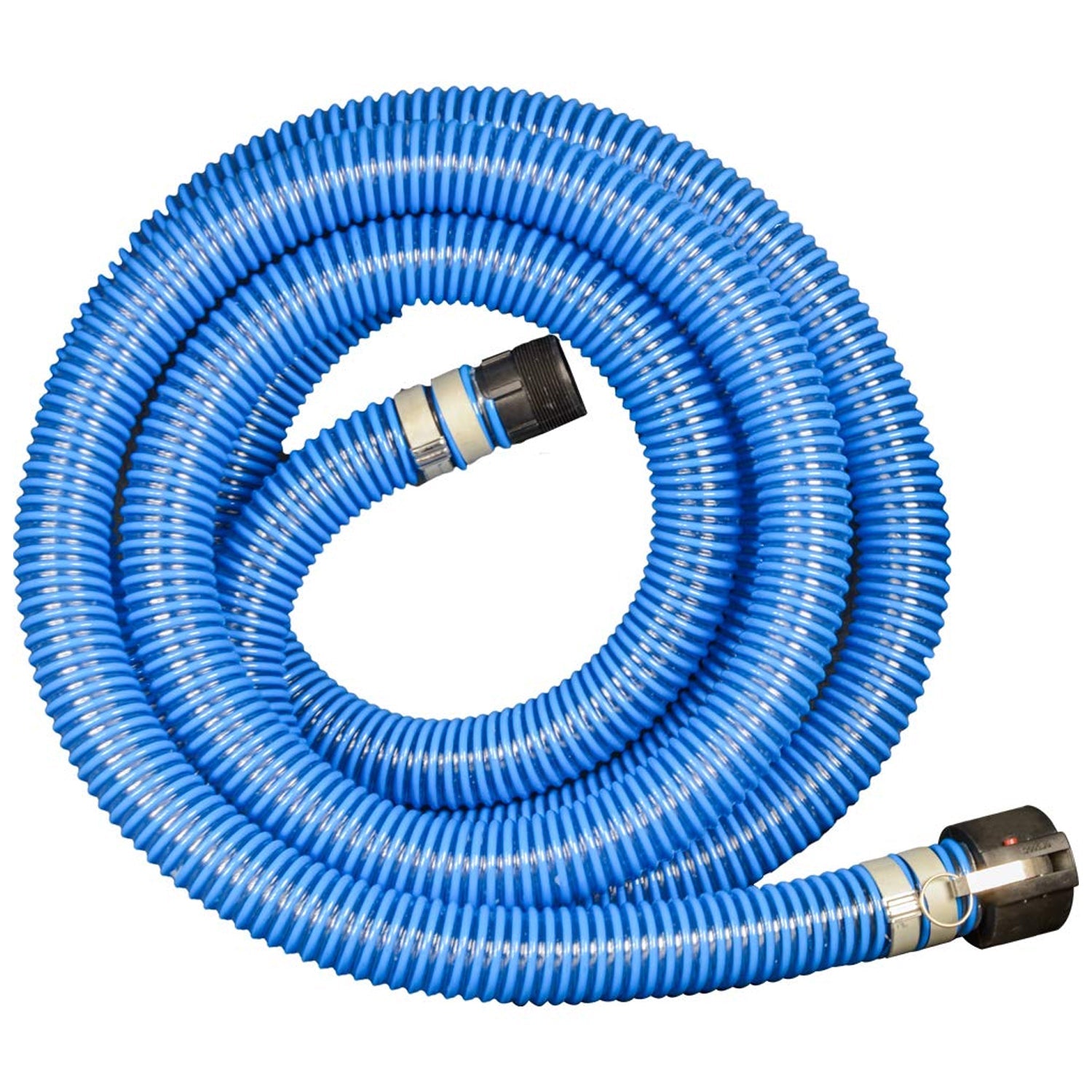 This suction garden hose is made from corrugated PVC that's both tough and flexible, letting you thread it just about anywhere. The large 2-inch diameter hose has smooth interior walls that resist blocks and clogs, ensuring quick, problem-free liquid transfer. The trash pump intake hose has a female cam-lock and male pipe thread made from polypropylene with a king nipple, letting you easily couple and uncouple from standard connections as needed.