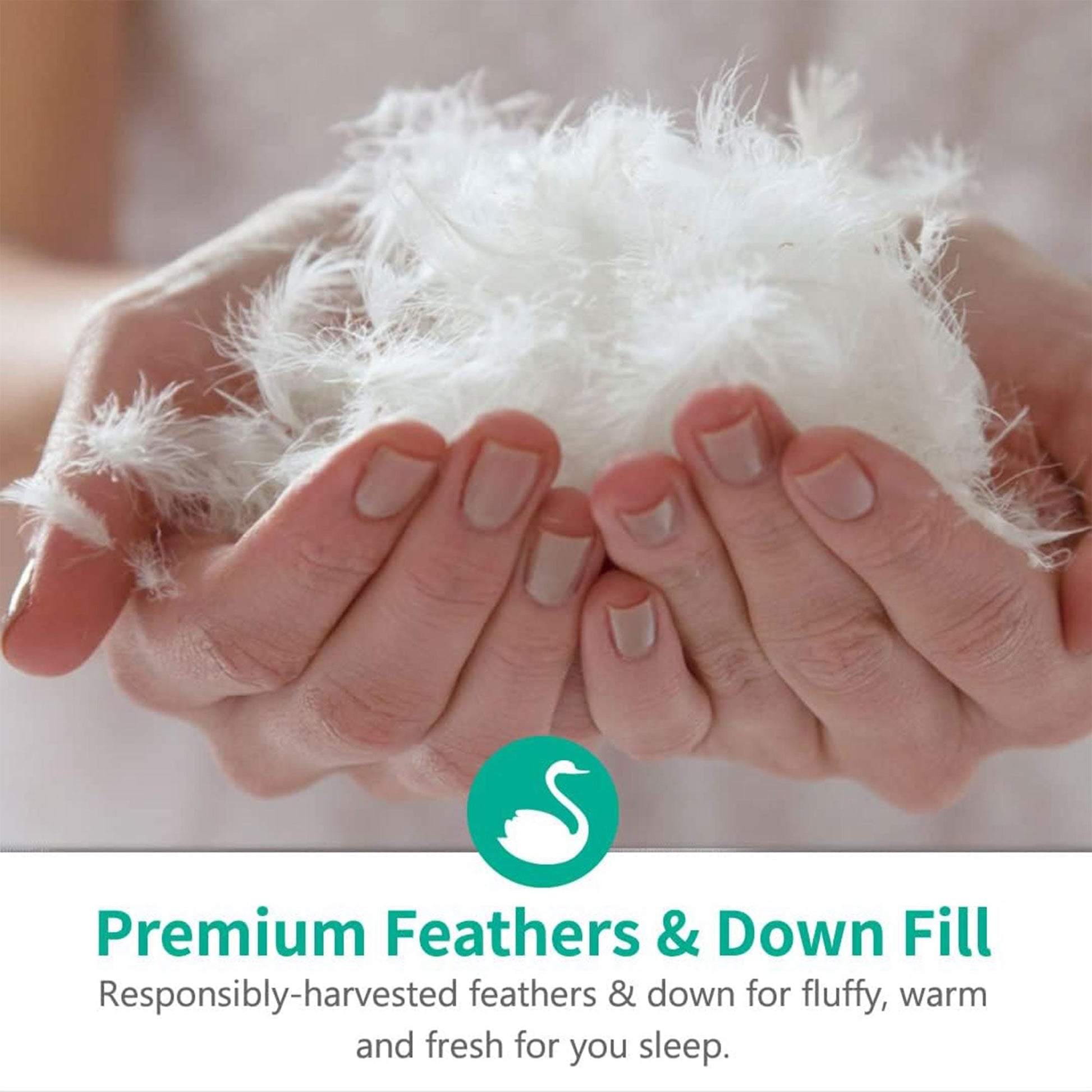 Experience luxury with the APSMILE 90 by 106 Lightweight All Season Feathers Down Comforter. Available in Twin, Queen, King, or California King sizes, this bed essential offers optimal thickness for warmth in hot weather or for warm sleepers.