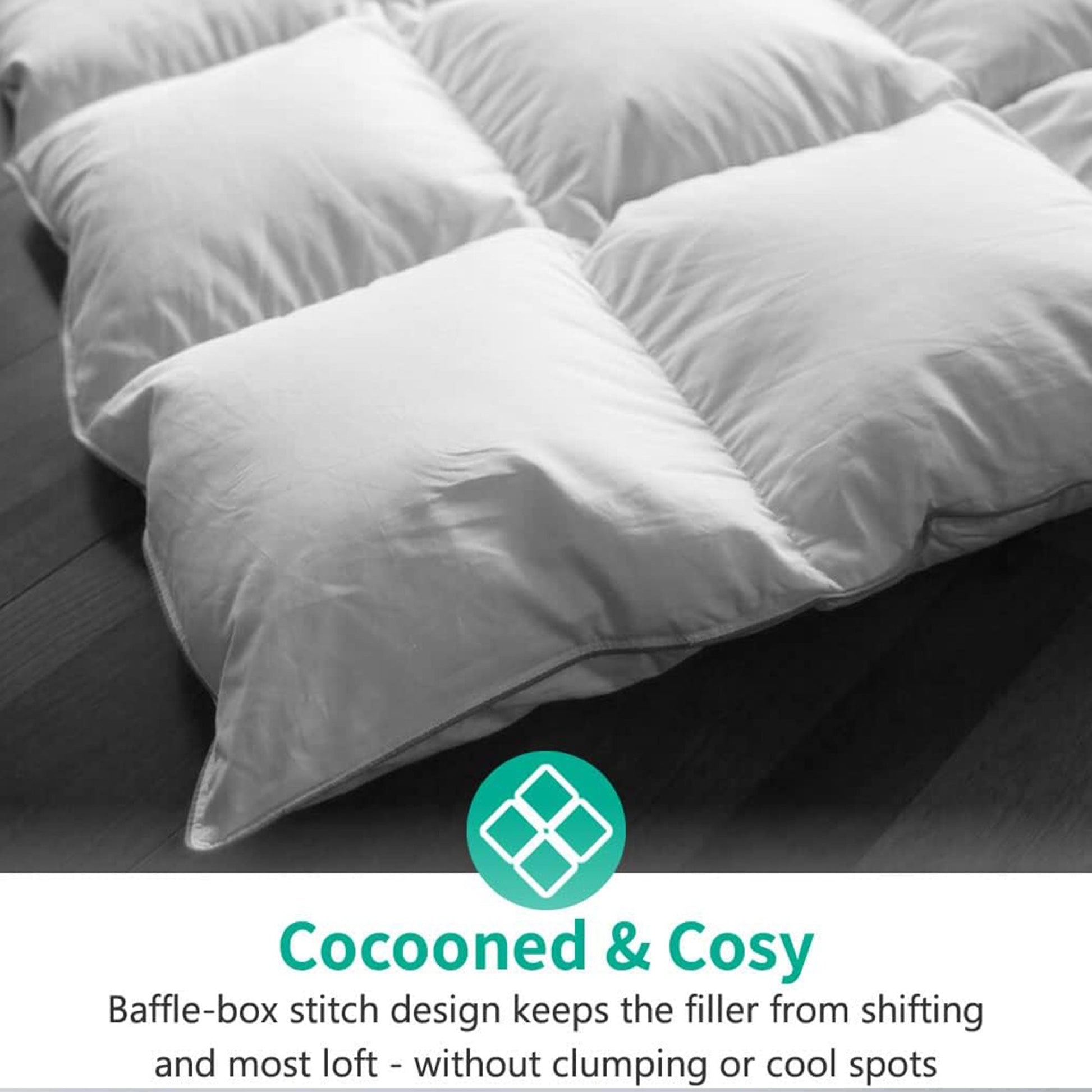 - Designed with baffle box quilting for even distribution, ensuring a cloud-like sensation every night