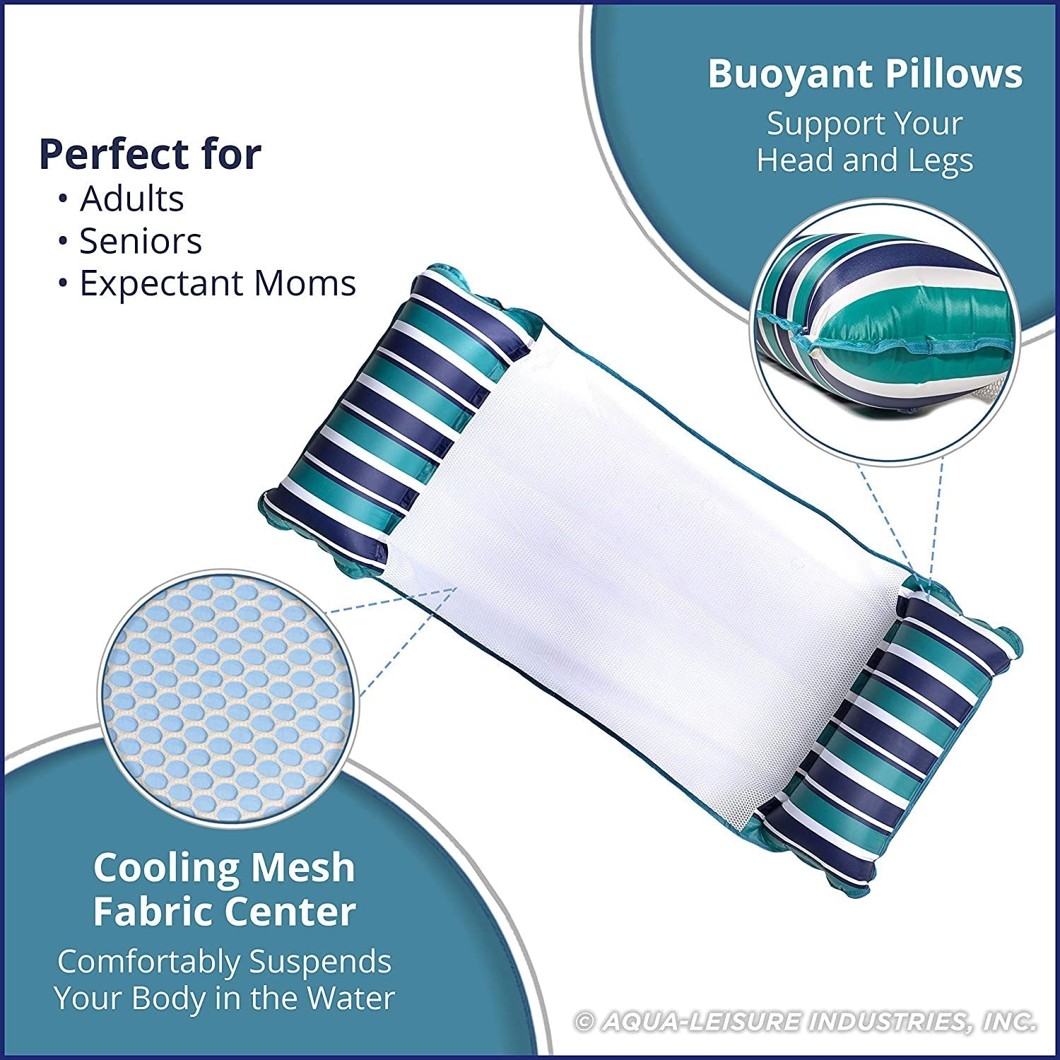 Aqua Leisure Monterey XL Hammock 4 in 1 Inflatable Pool Float, Teal/Blue Stripe