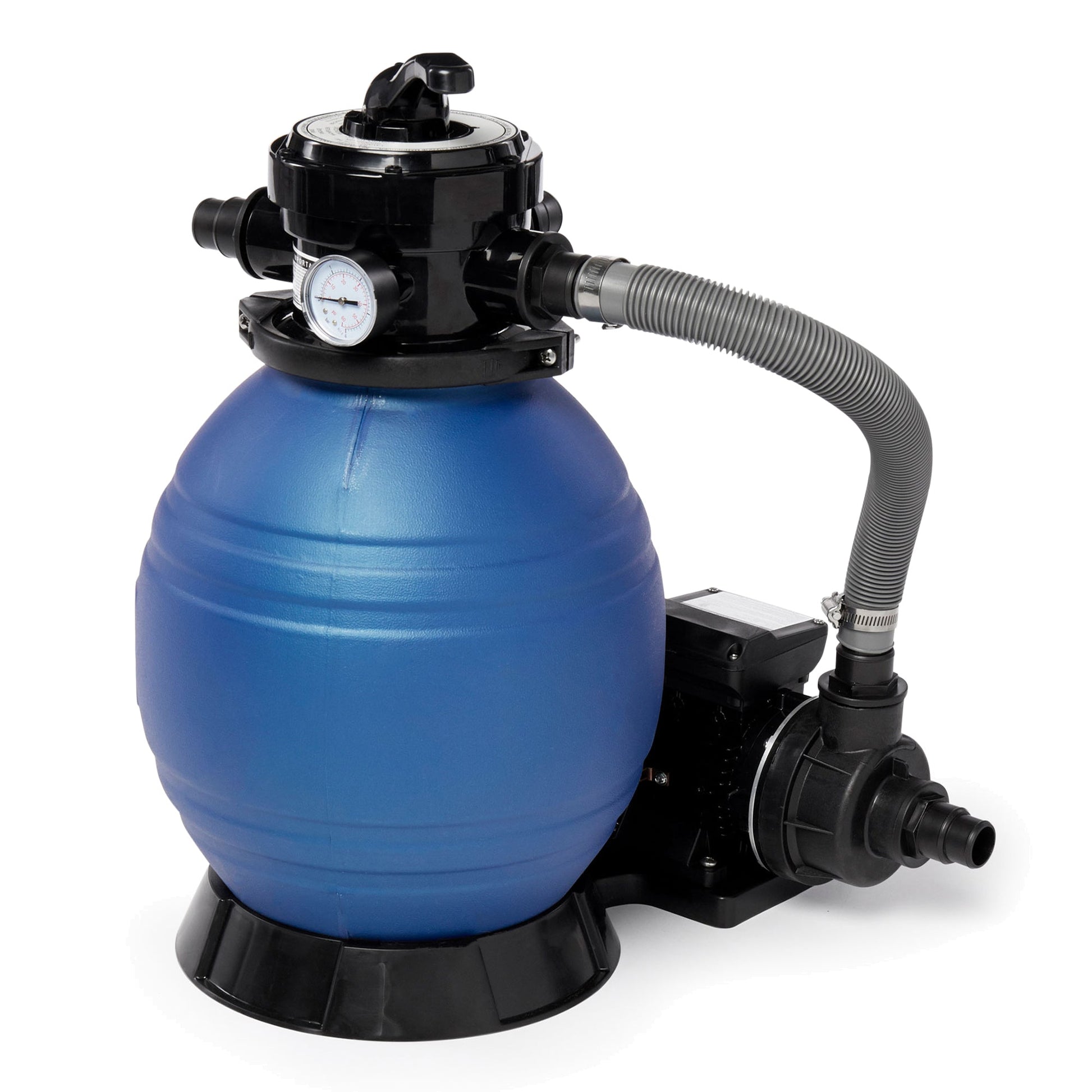 • Fully integrated sand filter, pump, pressure valve, and stand