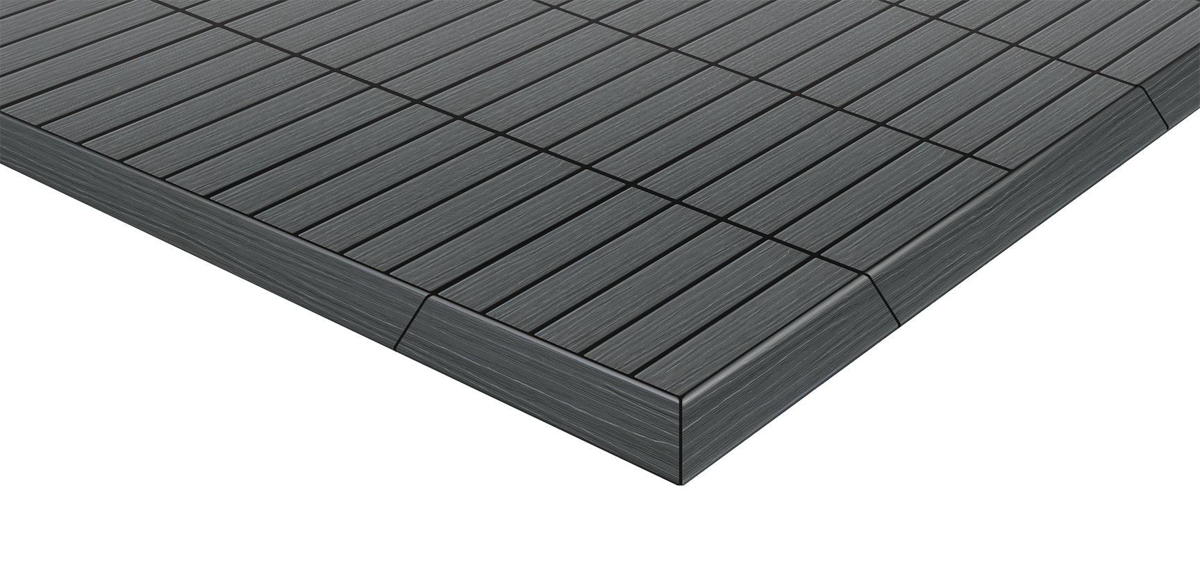 - Finish any exposed edges with the AURA Deck Tile Transition in Weathered Gray