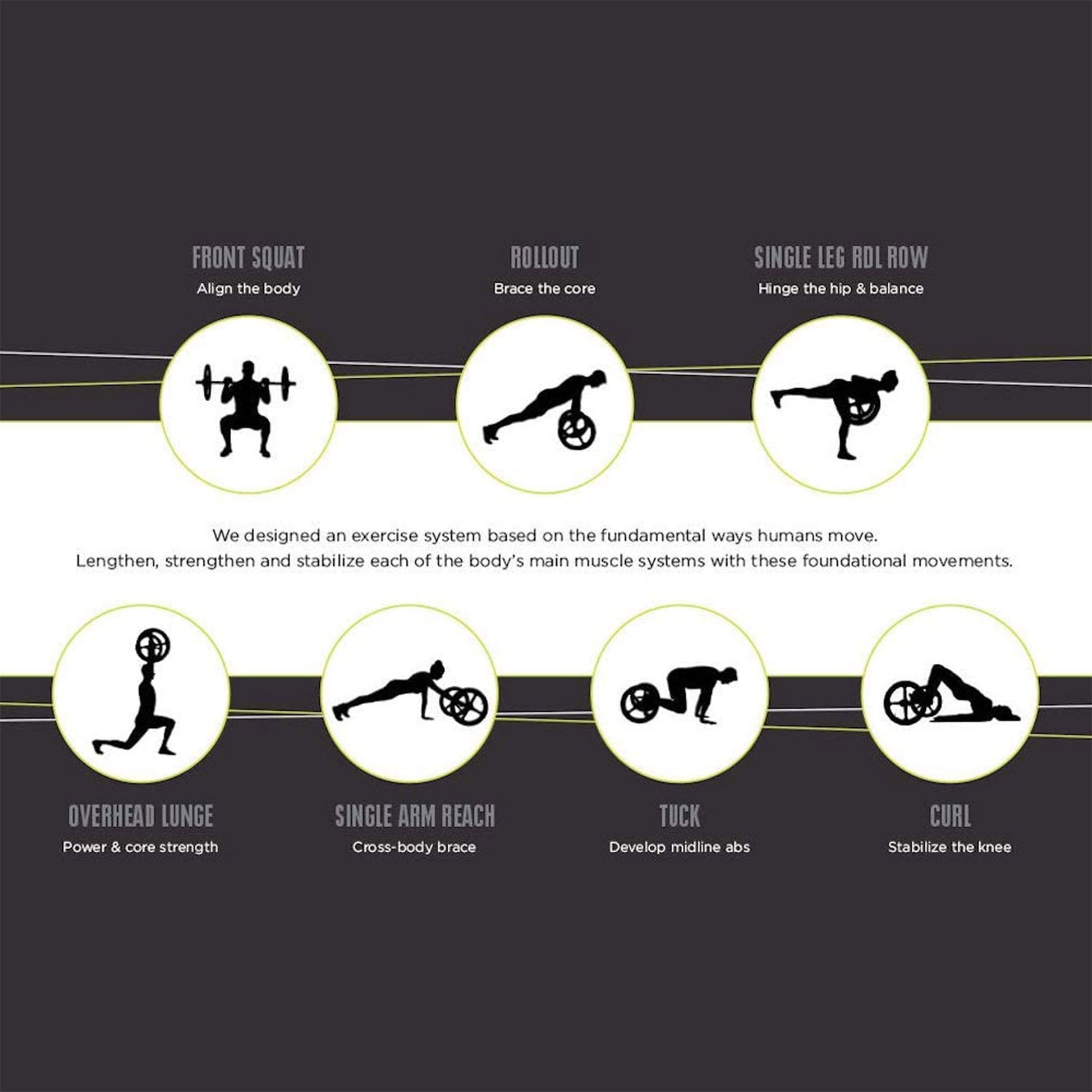 - Use to perform effective full-body workouts like bench presses, straight bar lifting, deadlifts, core roller, plank tool, or foot anchors