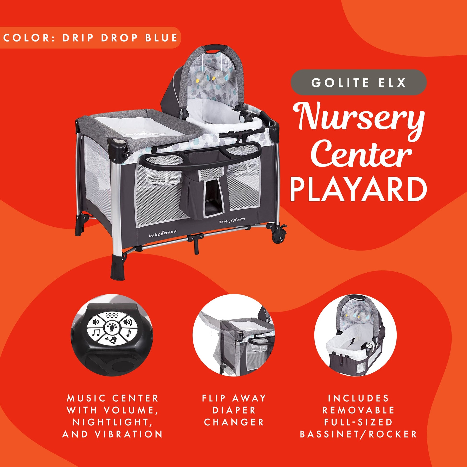 Baby Trend GoLite ELX Portable Deluxe Infant Play Nursery Center, Drip Drop Blue