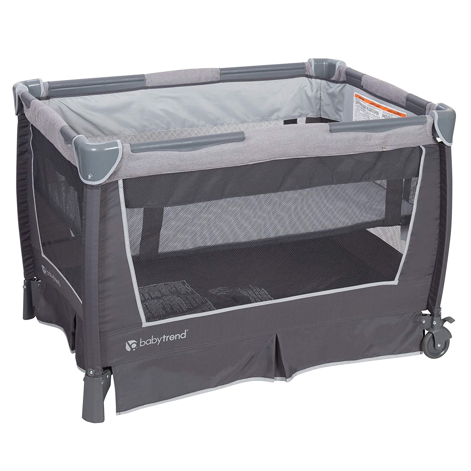 The Baby Trend Retreat Nursery Center has just about everything you need to keep your baby happy, clean, and safe. This portable playard includes a removable full bassinet, changing table, and a deluxe organizer for diapers, wipes, toys, and new outfits.