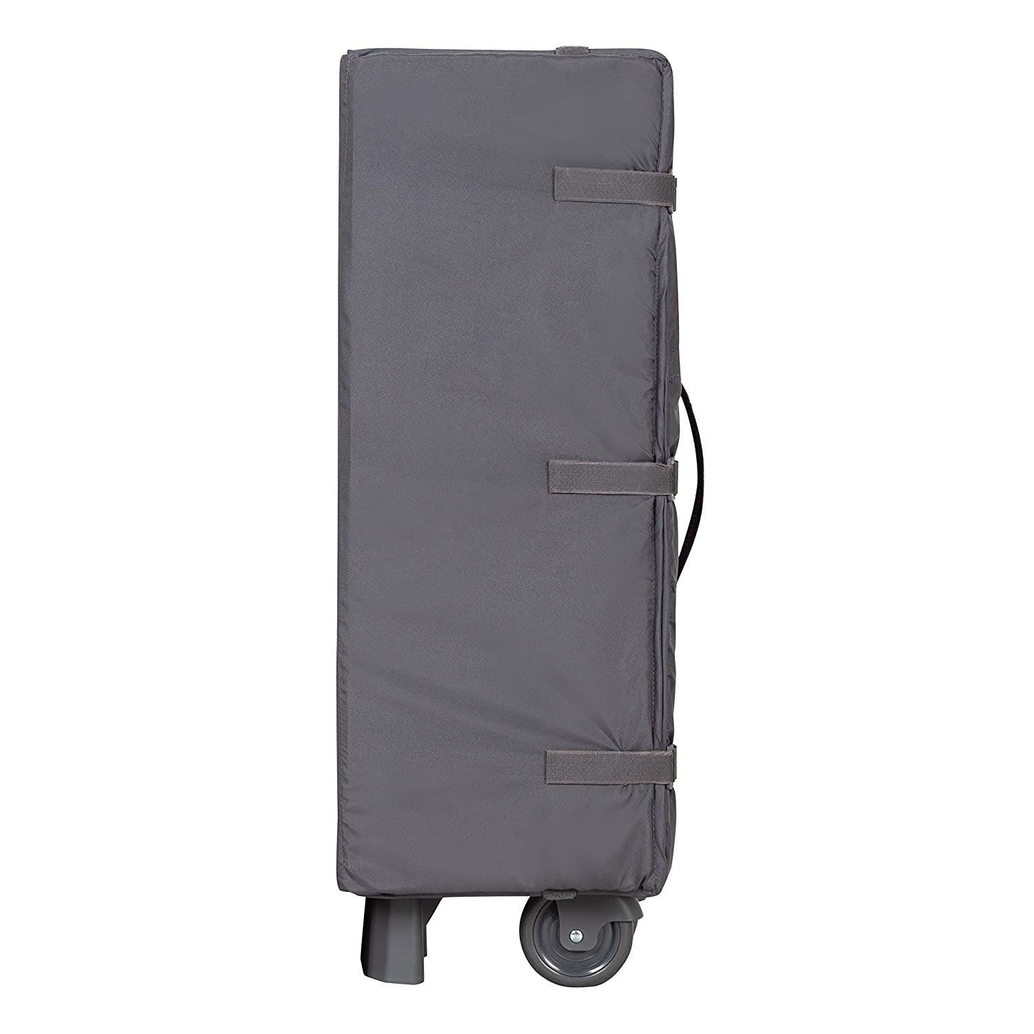 The removable Rock-a-Bye Bassinet features a canopy and handle; this deluxe bassinet can even turn into a standalone rocker to help your little one relax and sleep. The plush, fabric-lined playard has mesh sides for proper ventilation. Move the foldable playard from place to place with its large wheels, and lock the brakes in place with 1 hand. A carrying bag is included for easy transport or storage.
