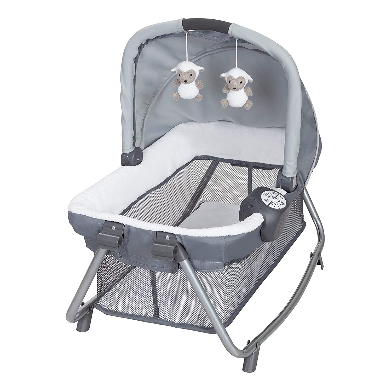 - Complete nursery center includes removable Rock-A-Bye Bassinet with canopy and carry handle
