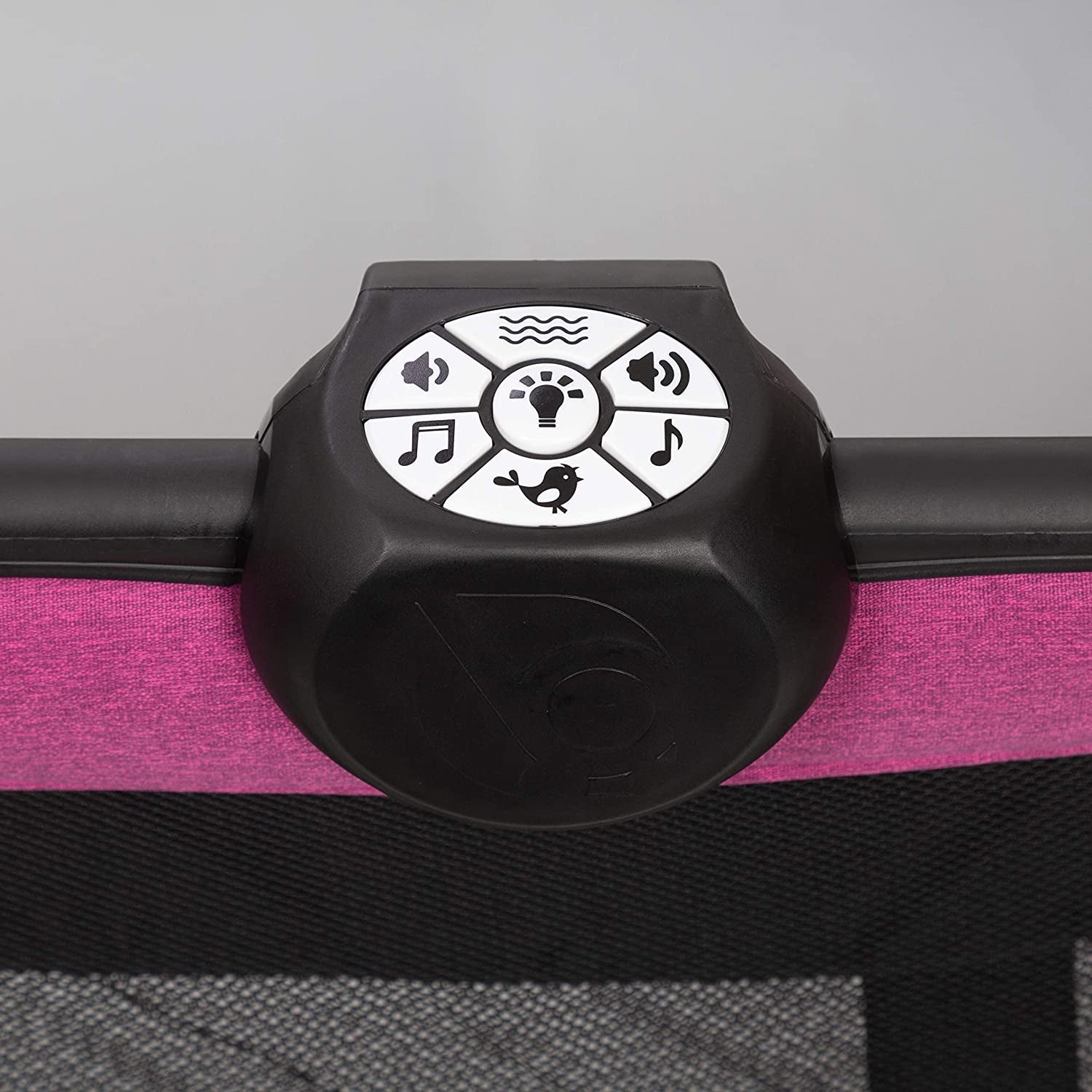 - Electronic music center includes volume control, nightlight, vibration, two music styles, and nature sounds