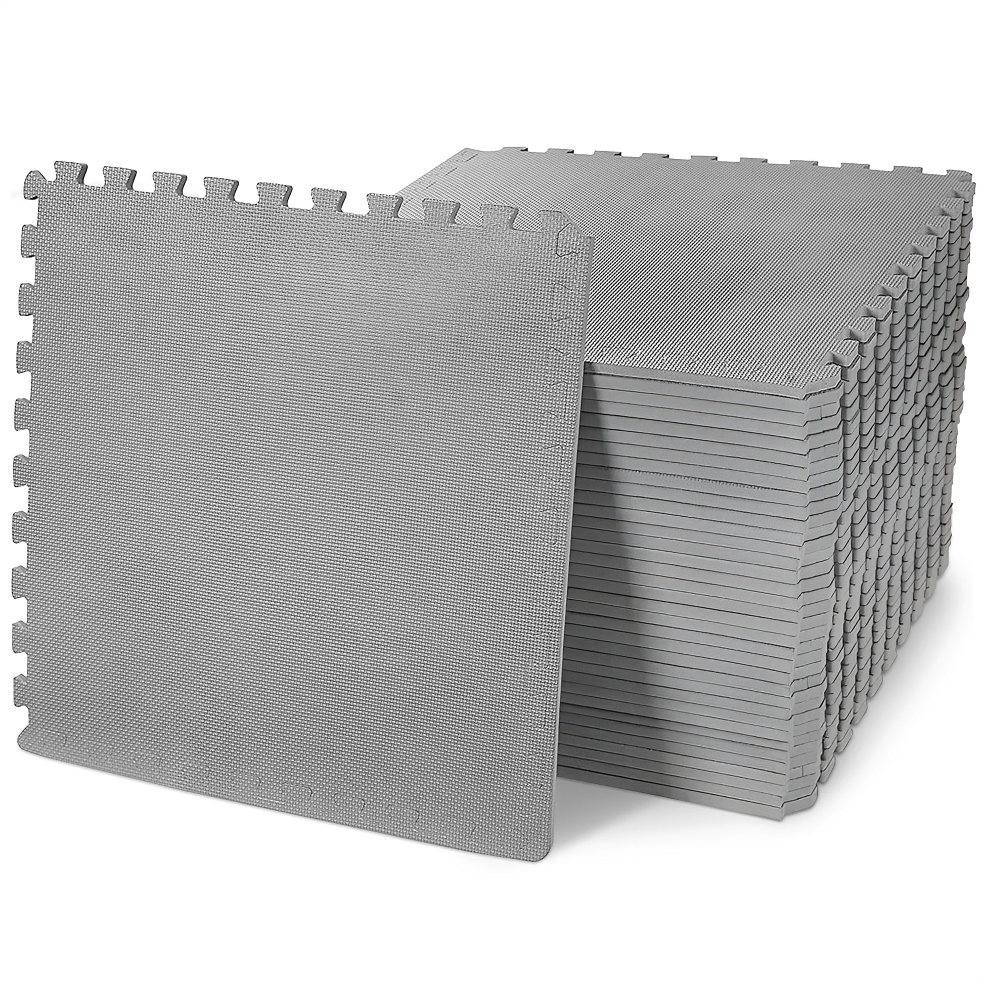 BalanceFrom Fitness 144 Sq Ft Interlocking EVA Foam Exercise Mat Tiles, Gray