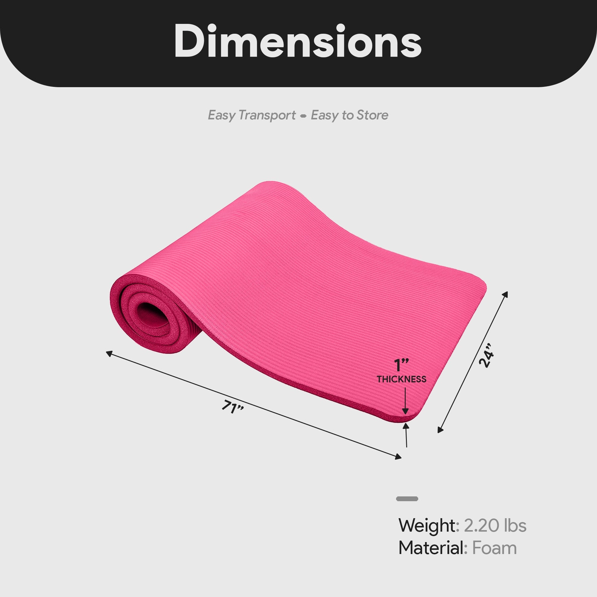 BalanceFrom GoCloud 1" Extra Thick Exercise Yoga Mat with Carrying Strap, Pink