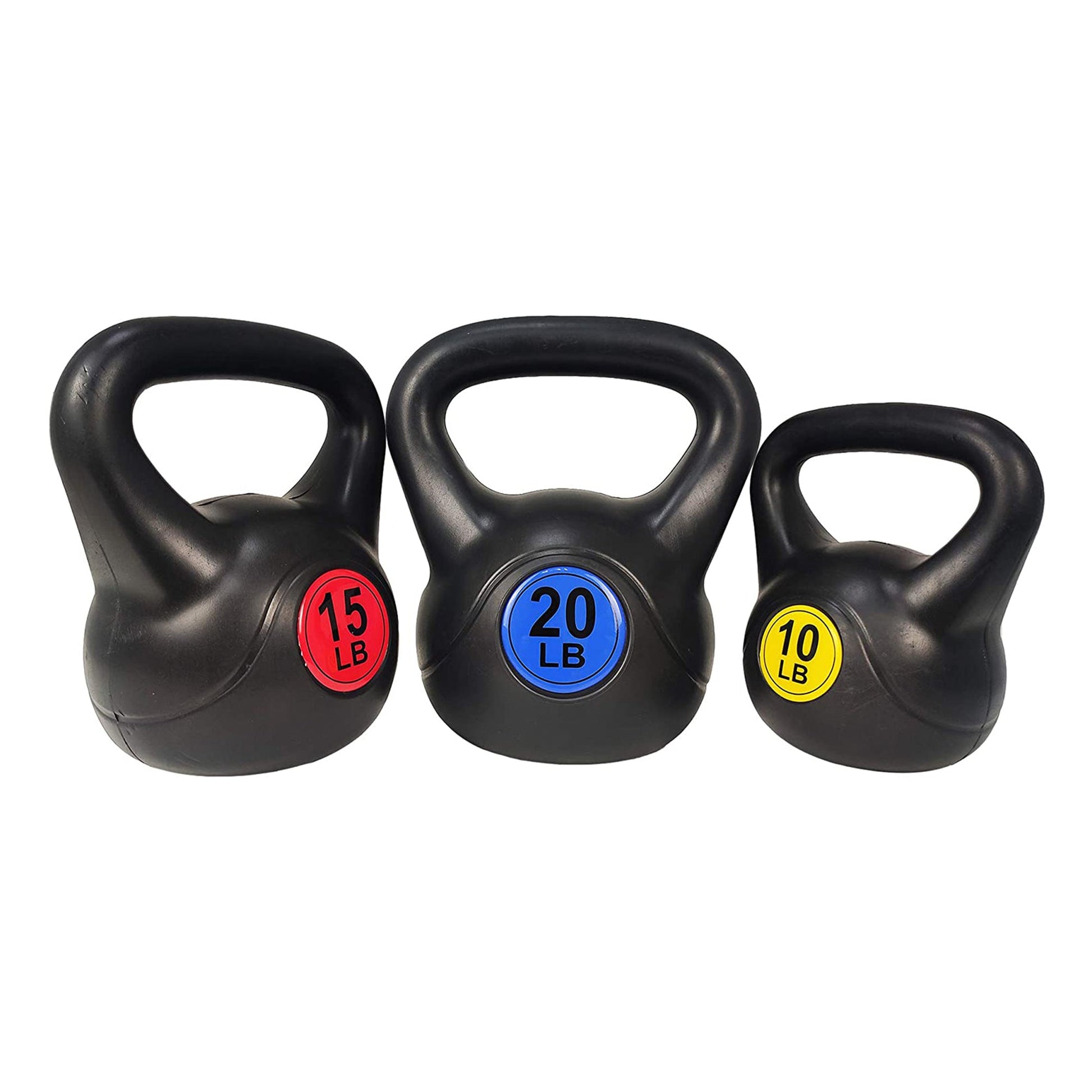 Providing a great counterbalance for upper and lower body workouts, the Wide Grip Kettlebell Fitness Exercise Weight Set upgrades your fitness exercises and helps you achieve the results you want. Featuring 3 weights at 10, 15, and 20 pounds, these weights are great for a variety of workouts and experience levels.
