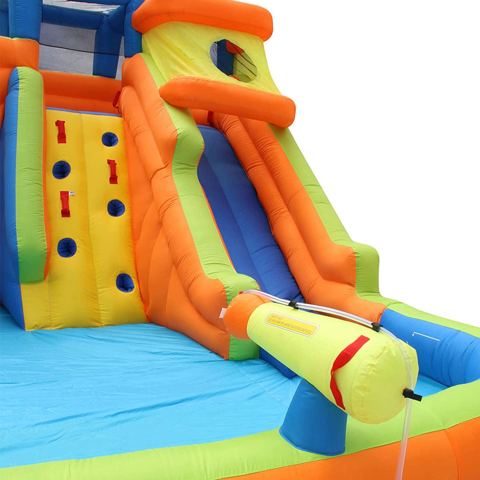 - Features a continuous built-in water-blasting spraying cannon to add to the water park activities