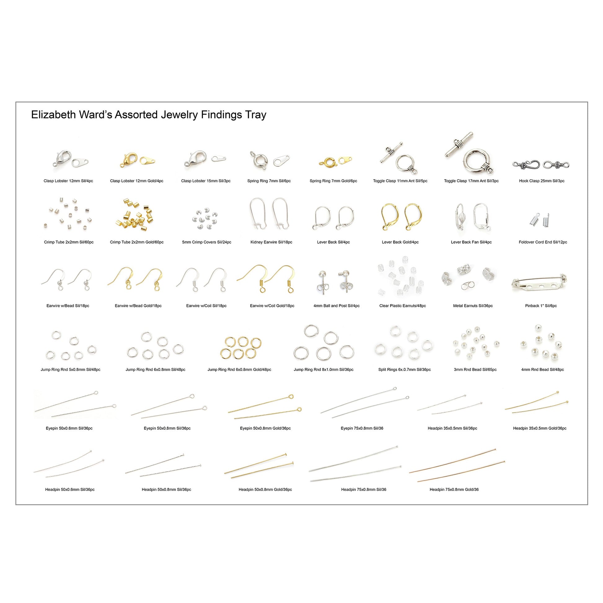 Bead Storage Solutions Elizabeth Ward 1,111pc Assorted Jewelry Findings Tray