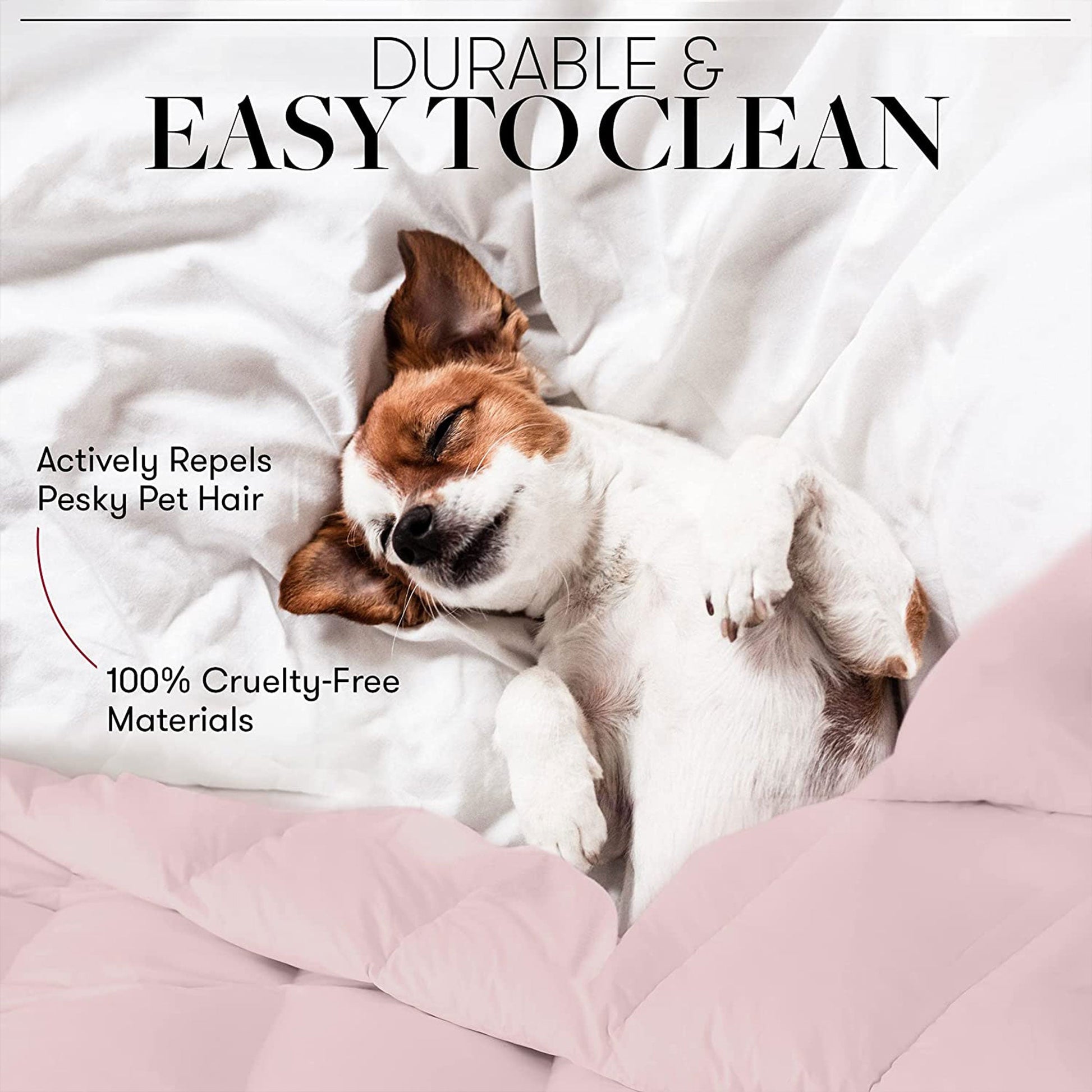- Durable and easy to clean, this down comforter actively repels pesky pet hair for easy maintenance