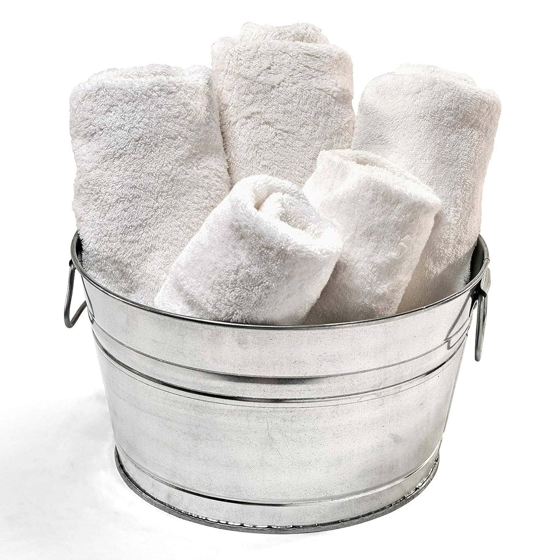 Crafted from galvanized steel, this round tub ensures exceptional quality and endurance. Highlighted by its smart design, the tub incorporates an offset bottom, effectively elevating it from the ground for enhanced cleanliness and lastingness. Equipped with wire handles, it offers convenient portability, making it easy to carry wherever needed.