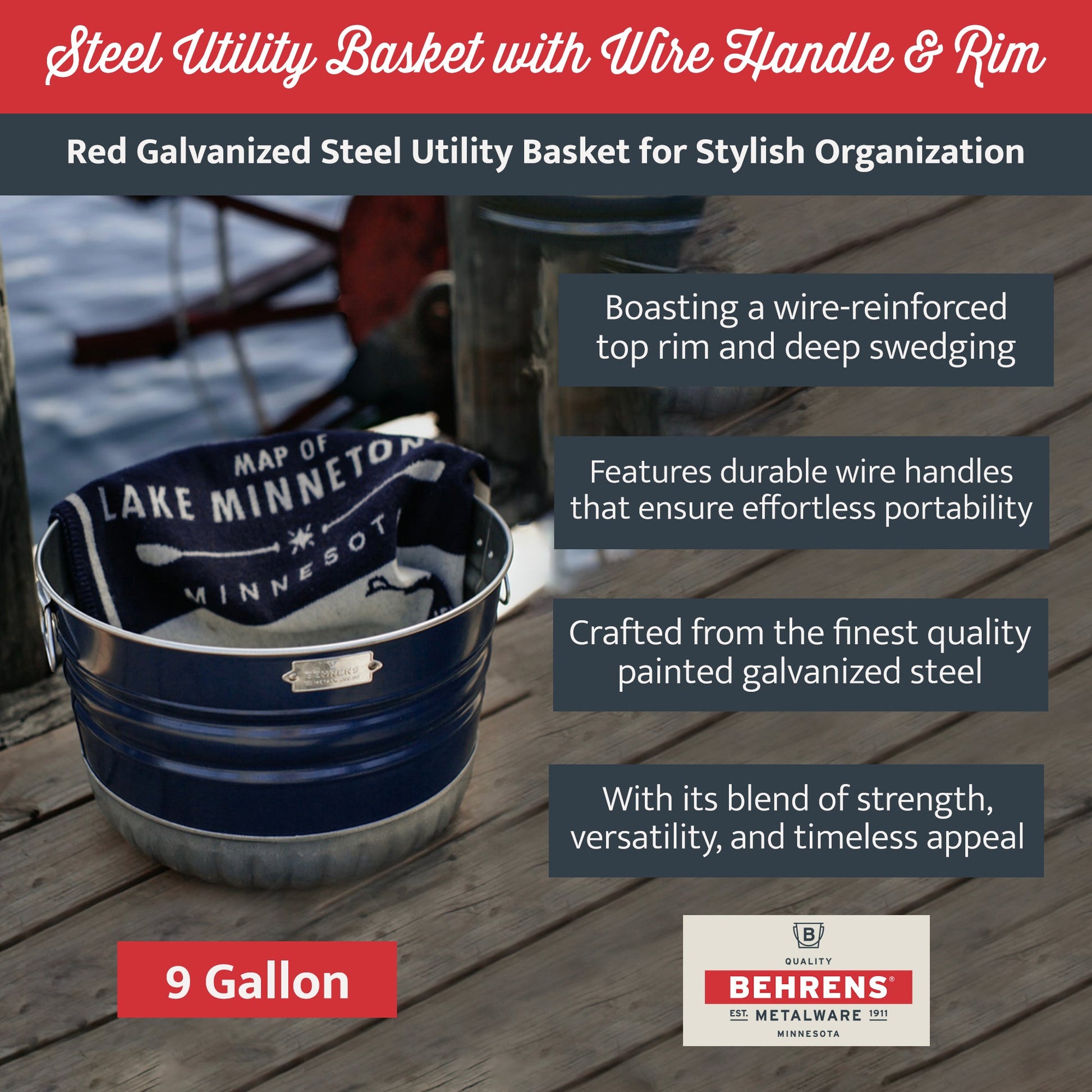 Behrens 9 Gal Galvanized Steel Utility Basket with Wire Handle, Navy Blue Bushel