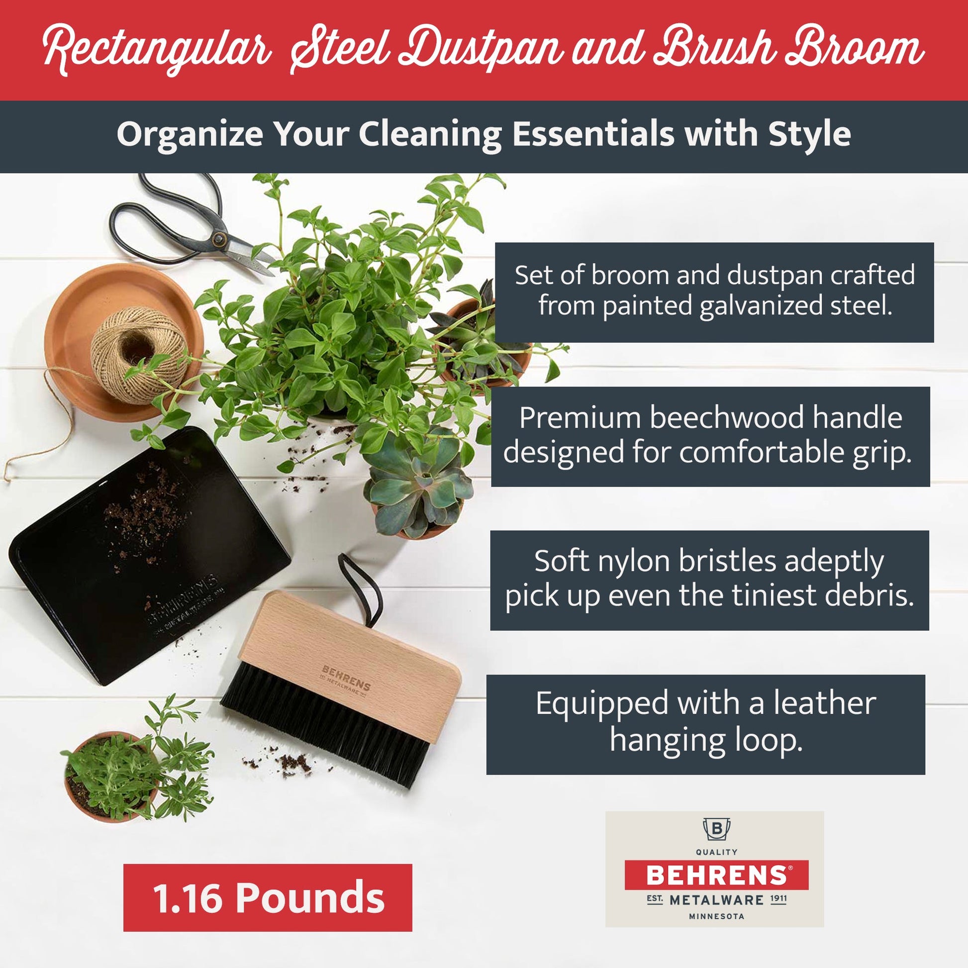 Whether you're tidying up after a busy day or preparing your space for guests, the Behrens Portable Rectangular Galvanized Steel Dustpan and Brush Broom Set is your go-to solution for achieving a pristine clean with style and sophistication.