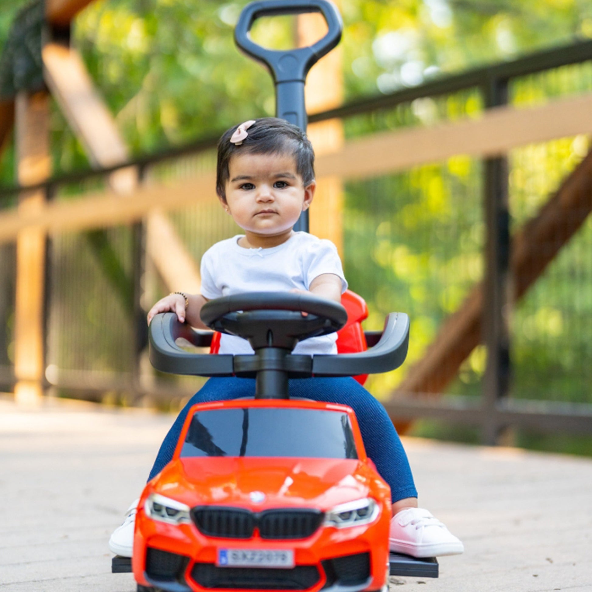 Best Ride On Cars BMW M5 4 in 1 Ride On Push Car w/Control Bar & LED Lights, Red