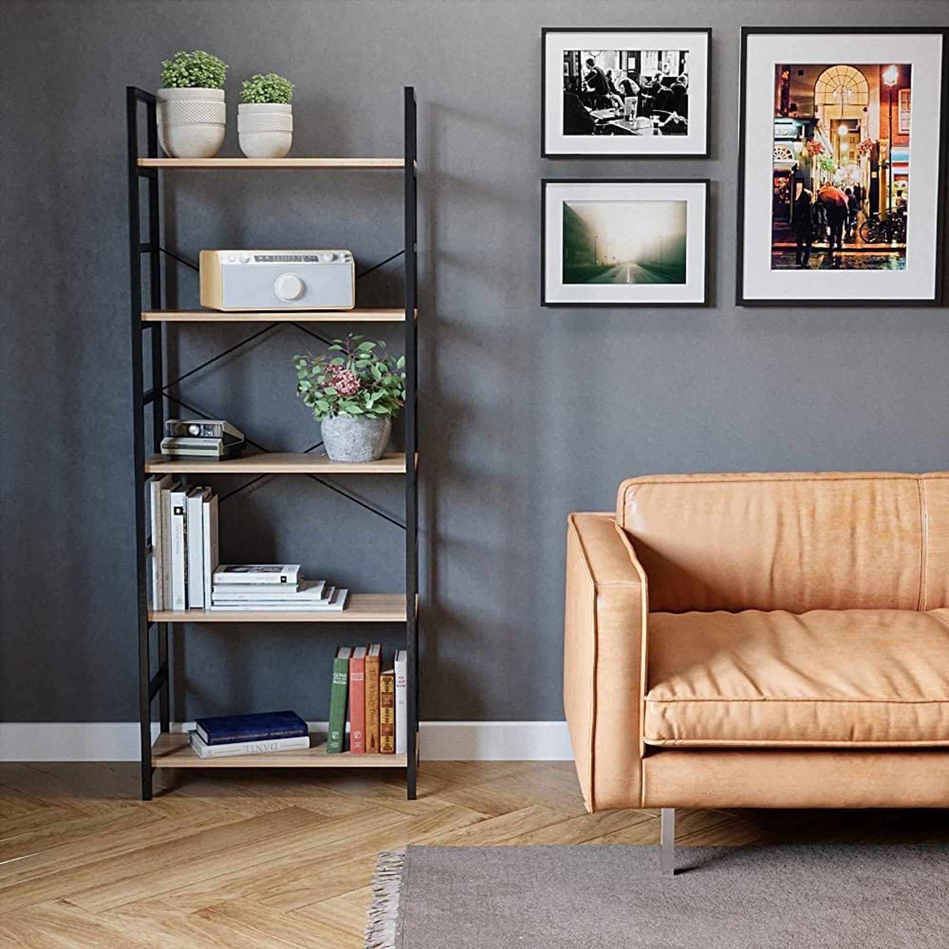 The Bestier 5 Tier Multifunctional Storage Bookshelf turns any room into an office space for students, writers, artists, or professionals of any kind.