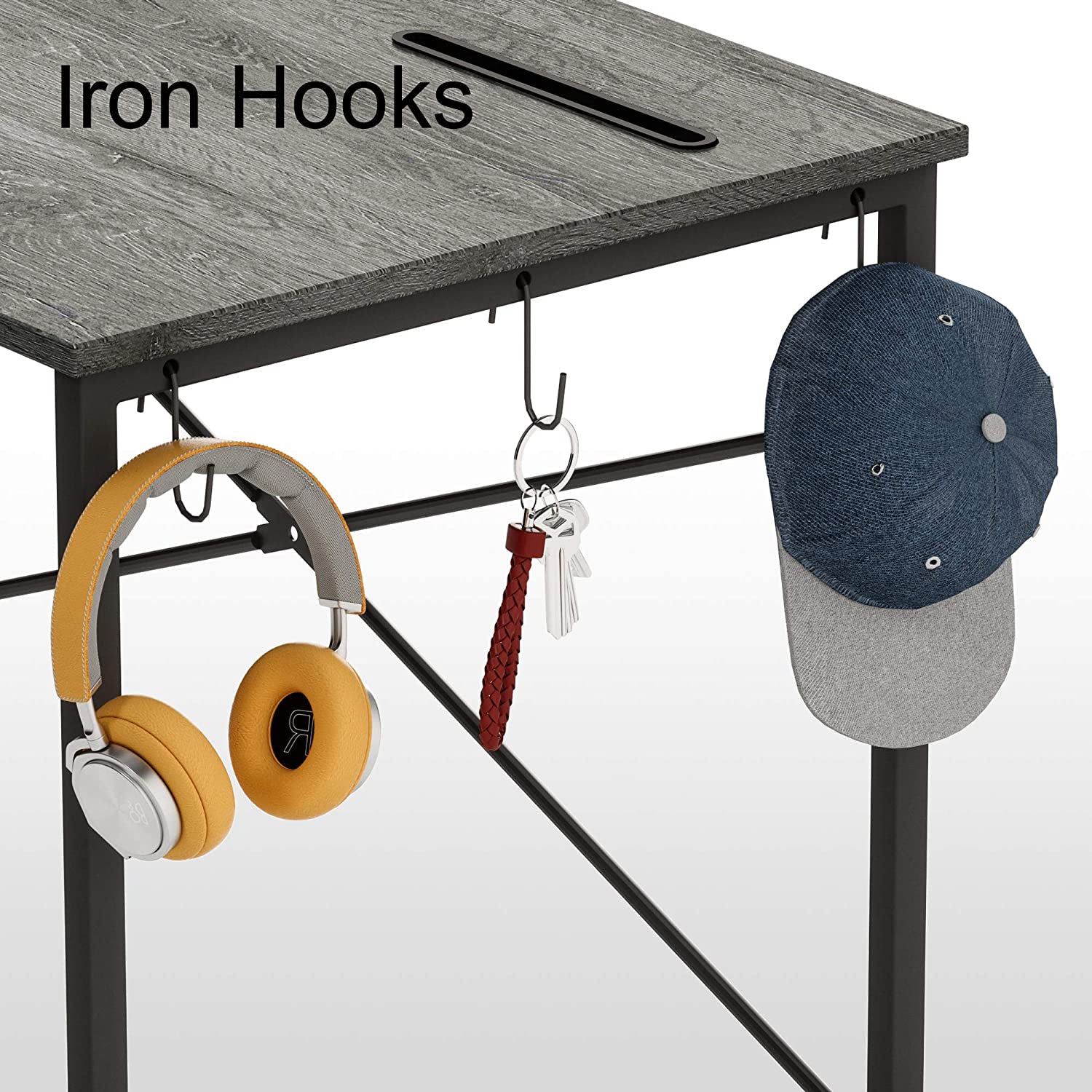 This work desk includes a storage bag and iron hooks that effectively organize space to keep your office clean and tidy. Use them to keep study materials, books, and important items easily accessible but out of sight. Conveniently hold any iPad, tablet, smartphone, or kindle with the included 8.8-inch built-in iPad stand groove.