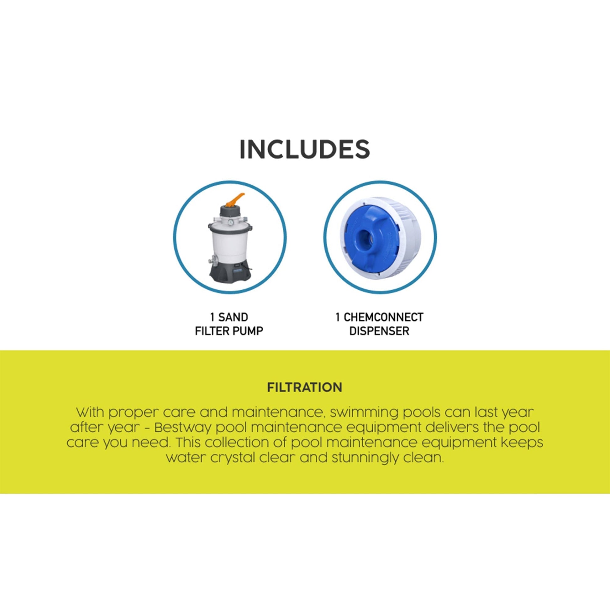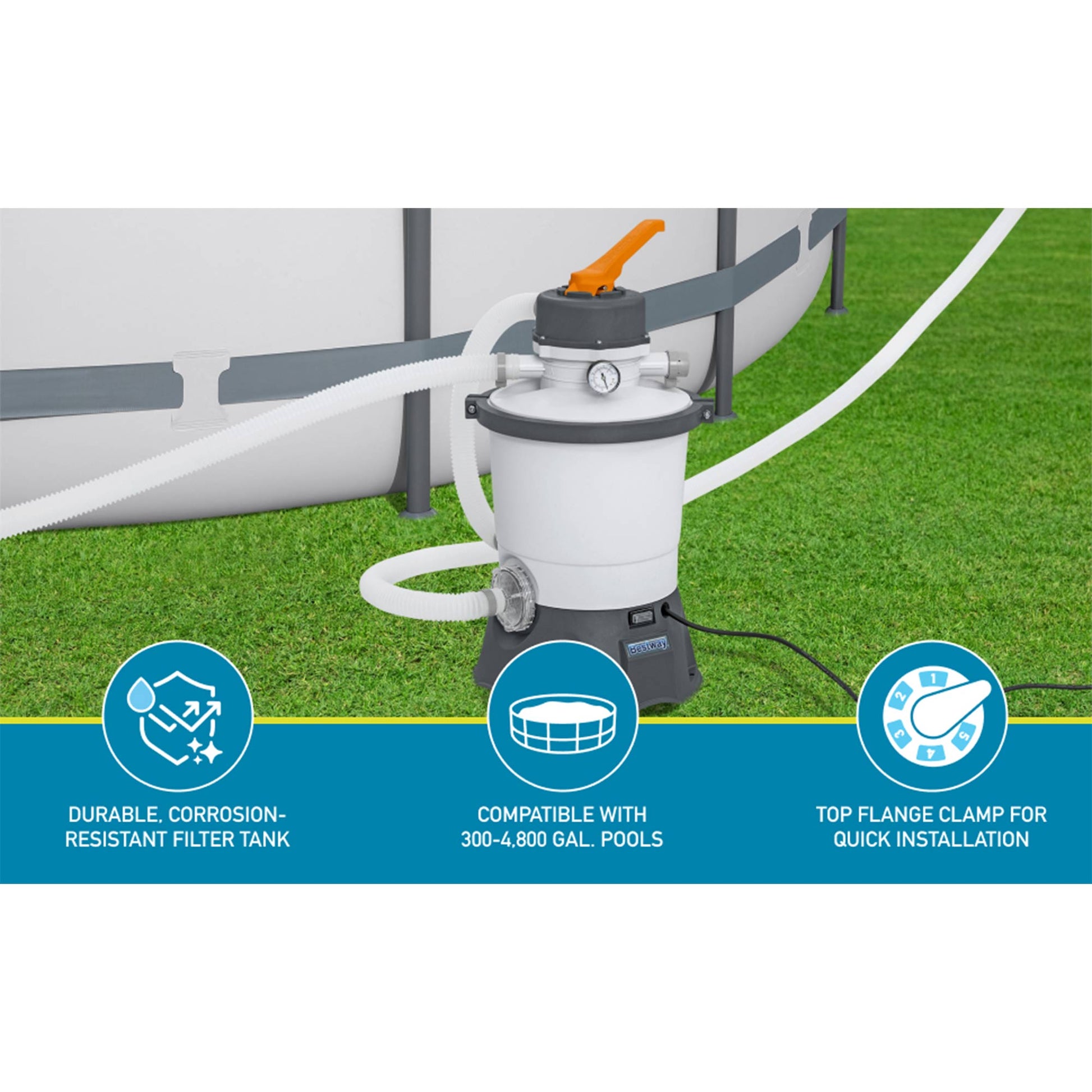 Bestway Flowclear 800 Gal Sand Filter Pool Pump w/ChemConnect & Top Flange Clamp