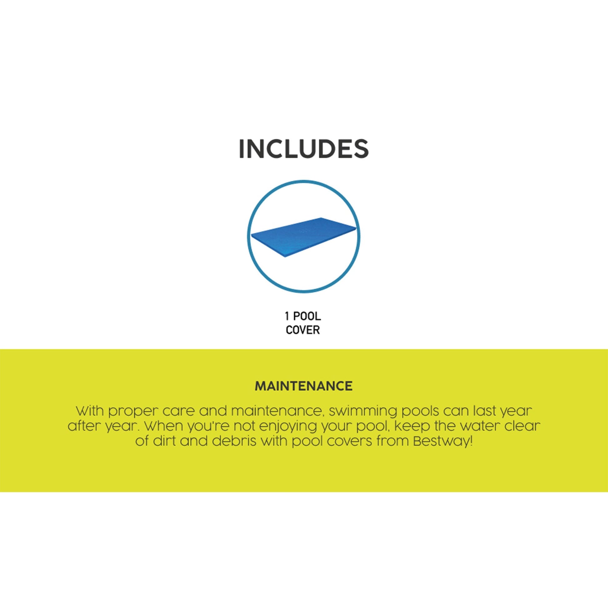 This specific cover is recommended for use with above-ground pools up to 157 inches long, 83 inches wide, and 32 inches tall. Whether a bad storm is rolling in, you're packing up for a vacation, or that winter chill is setting in, be prepared to protect your pool from anything with the Bestway Rectangular Pool Cover.