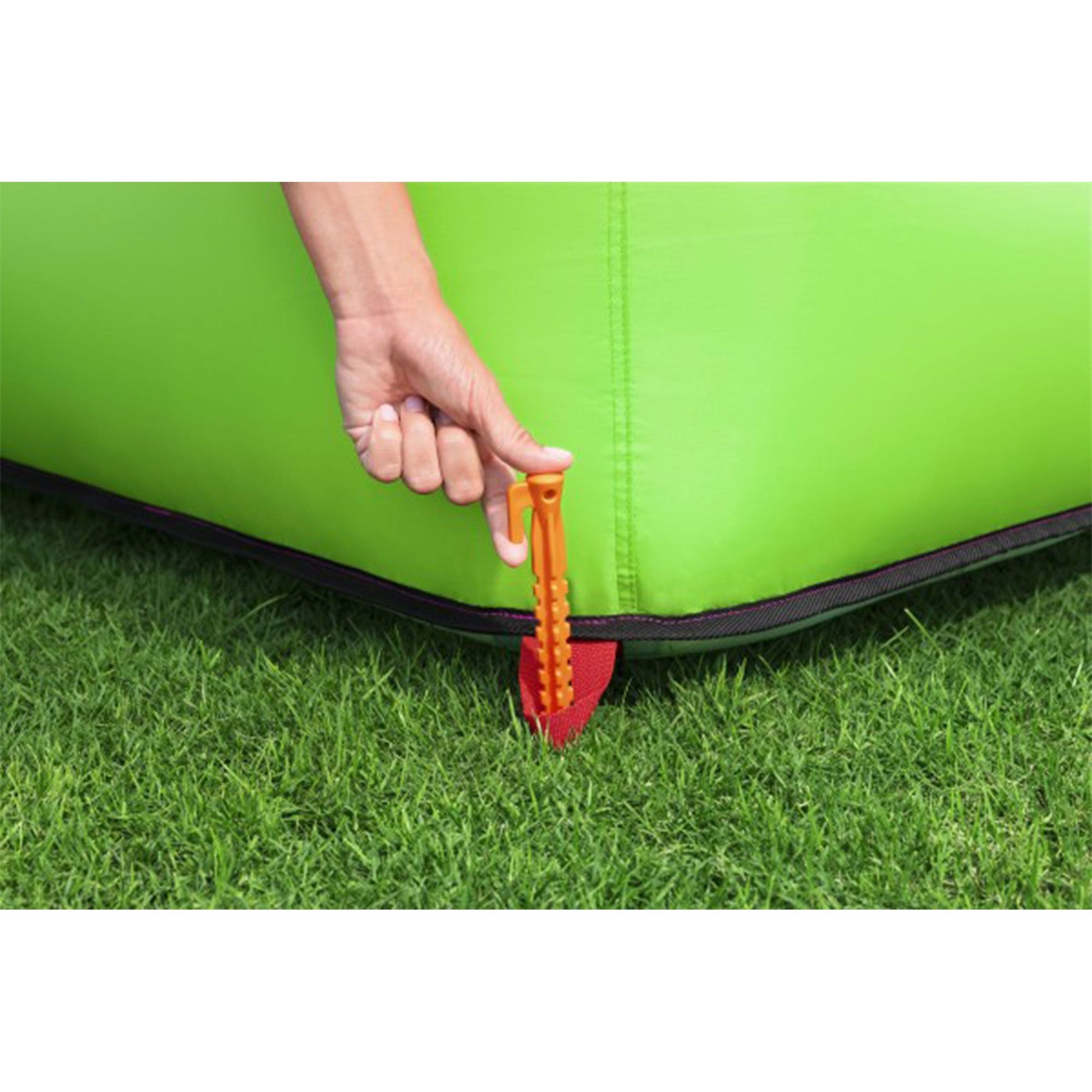 - Inflates in less than 2 minutes using the included heavy-duty blower while the stakes provide reliable stability